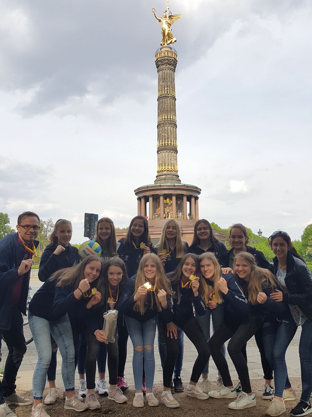 Nach dem starken Auftritt im Viertel- und Halbfinale (die WN berichteten) gingen die Spielerinnen auch am dritten Turniertag hochmotiviert ans Netz. Es war ein unglaublich ausgeglichenes Spiel mit spannenden und langen Spielzügen. Während des gesamten ersten Durchgangs, in dem kein Team mehr als zwei Punkte Vorsprung erzielen konnte, agierten beide Kontrahenten auf Augenhöhe. Schließlich konnte die Loburg den ersten Satz mit 25:23 für sich entscheiden. Zu Beginn des zweiten Satzes stockte der Spielfluss und die spielstarken Mädchen aus der mecklenburgischen Hauptstadt konnten sich absetzen (2:5/3:8). Doch das Team um Kapitänin Julia Gahl zeigte sich nervenstark, stellte seine Unsicherheiten ab und übernahm selbst nach einer starken Serie die Führung (10:9). Im Folgenden konnten die Loburgerinnen - in ihren Heimatvereinen BSV Ostbevern und SV Bad Laer technisch und taktisch hervorragend ausgebildet – erstmals einen klaren Punktevorsprung erzielen (15:11 / 17:12). Beim Spielstand von 24:20 wehrten die Schwerinerinnen noch zwei Bälle ab, bevor das Spiel entschieden war. „Nicht nur die herausragende individuelle Klasse der Spielerinnen sondern vor allem der unglaublich starke Zusammenhalt im Team hat zu diesem grandiosen Erfolg geführt“, resümierte das Lehrergespann Océane Potthoff und Thorsten Wanke am Ende des Turniers.