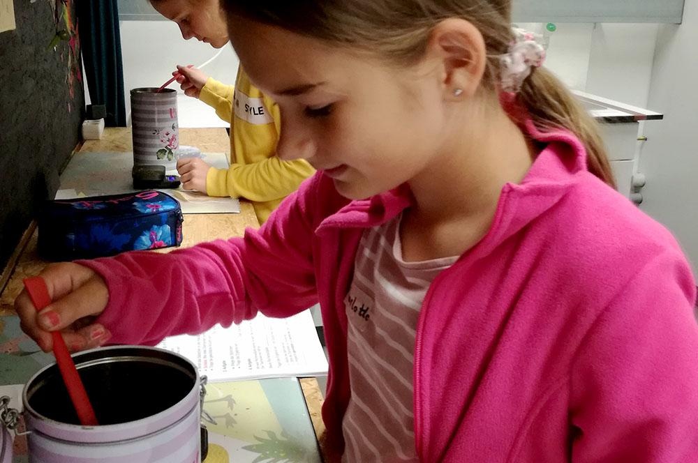 Auf experimentelle, spielerische, anschauliche und dadurch sehr abwechslungsreiche Art und Weise haben sich die SchülerInnen der 5 auf Entdeckungsreise begeben und mathematische und naturwissenschaftliche Themeninhalte unter dem diesjährigen Motto „Messen und Schätzen“ erarbeitet. Vor lauter Begeisterung und Forscherdrang vergaßen einige sogar ihre Frühstückspause und wollten auch noch weiter arbeiten, als es nach 4 Stunden hieß, dass man wieder Richtung Loburg aufbrechen müsse.
