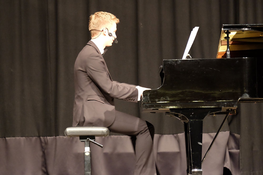 Die Moderation teilten sich Joanne Potthoff und Julian Kolorz, die erste im Glitzergewand und mit mindestens 10 cm hohen Absätzen eine echte Bühnenerscheinung, der letzte ganz Gentleman, seriös im Smoking. Er griff am Ende selbst in die Tasten und stellte seine „heiße Freundin“ vor. Na ja, ob man diese Dame als Schwiegertochter haben möchte, sei dahingestellt.