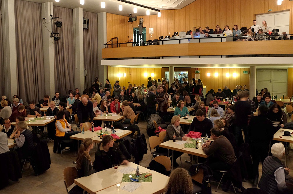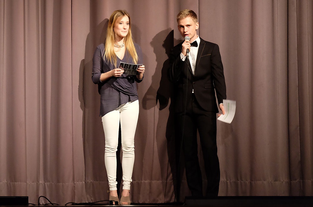„Abi on Stage“ war das Motto des Kreativabends, zu dem die Q2 am Sonntag, den 31. Januar in die Aula eingeladen hatte. Flexibel reagierte man auf den Einzug der deutschen Handballer in das Finale der Europameisterschaft, übertrug kurzerhand das Finale auf die große Leinwand und begann das eigentliche Programm – geschickt vom Obertechniker der Loburg, Dr. Sascha Sohn, per E-Mail am Sonntag noch angekündigt – eine gute Stunde später.