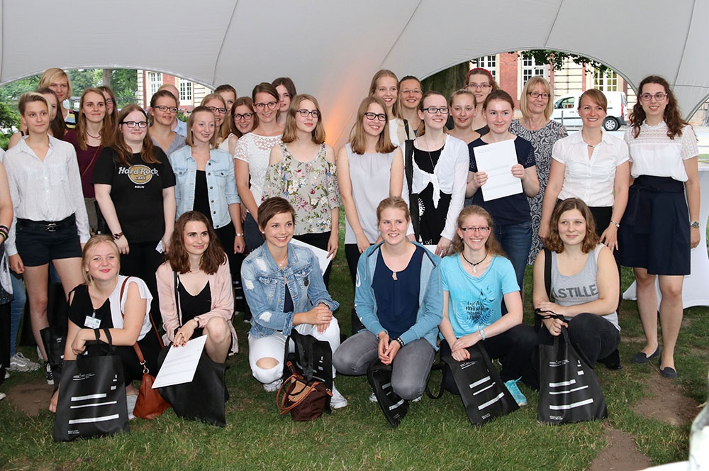 In den vergangenen 17 Monaten haben drei Loburgerinnen Einblicke in die Nanotechnologie und die damit verbundenen Berufsfelder erhalten, indem sie am Projekt "Nano4YourLife II" des Centrums für Nanotechnologie an der Westfälischen Wilhelms-Universität Münster (WWU) teilnahmen. Zum erfolgreichen Abschluss erhielten sie nun im Rahmen des Schlossgartenfestes der Uni Münster zusammen mit 30 weiteren Teilnehmerinnen aus der Hand des Unirektors Prof. Dr. Johannes Wessels ihre Zertifikate.