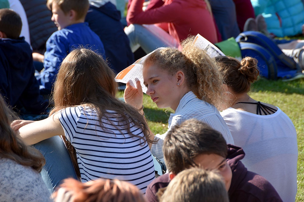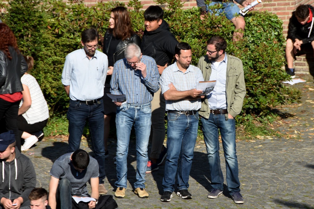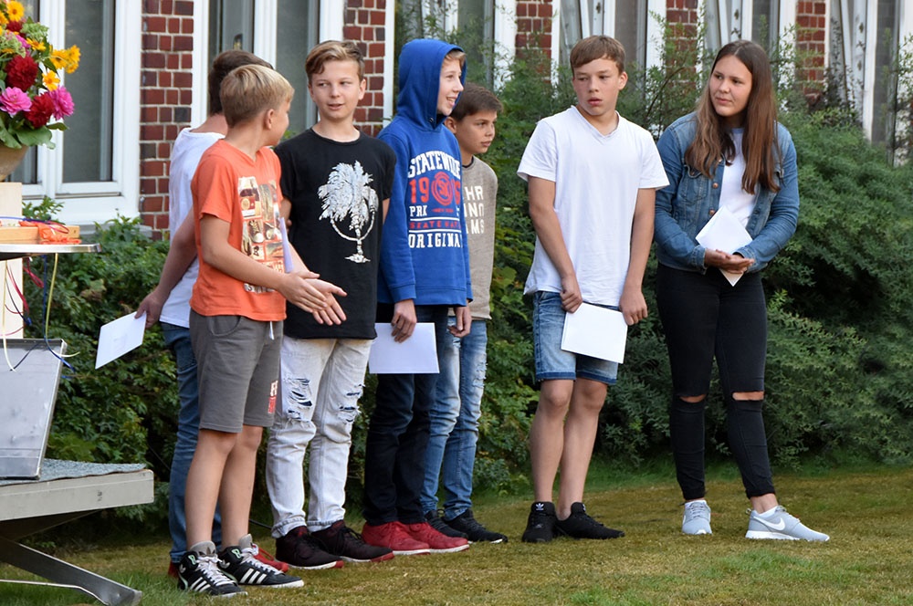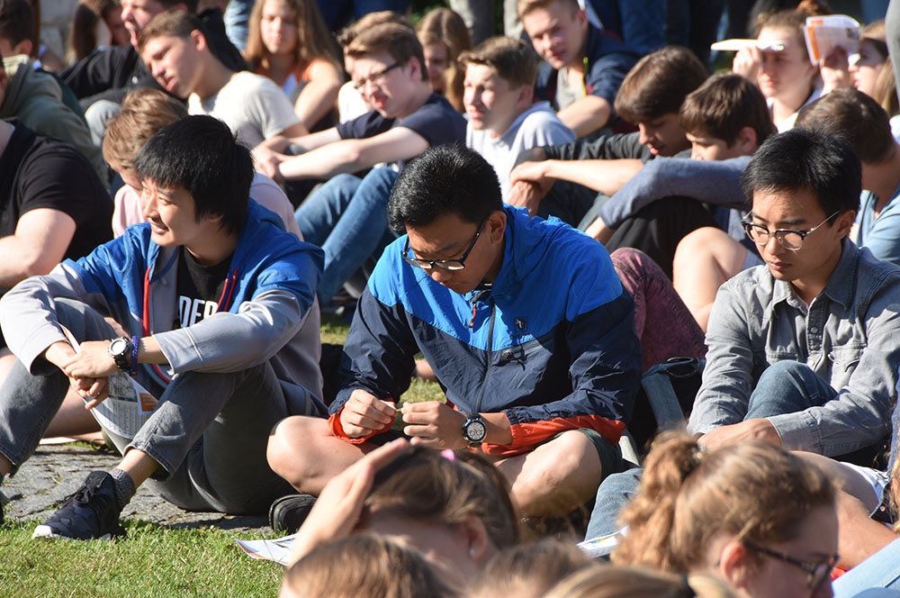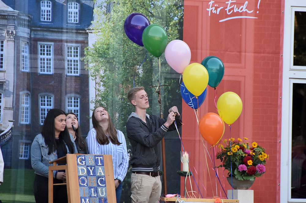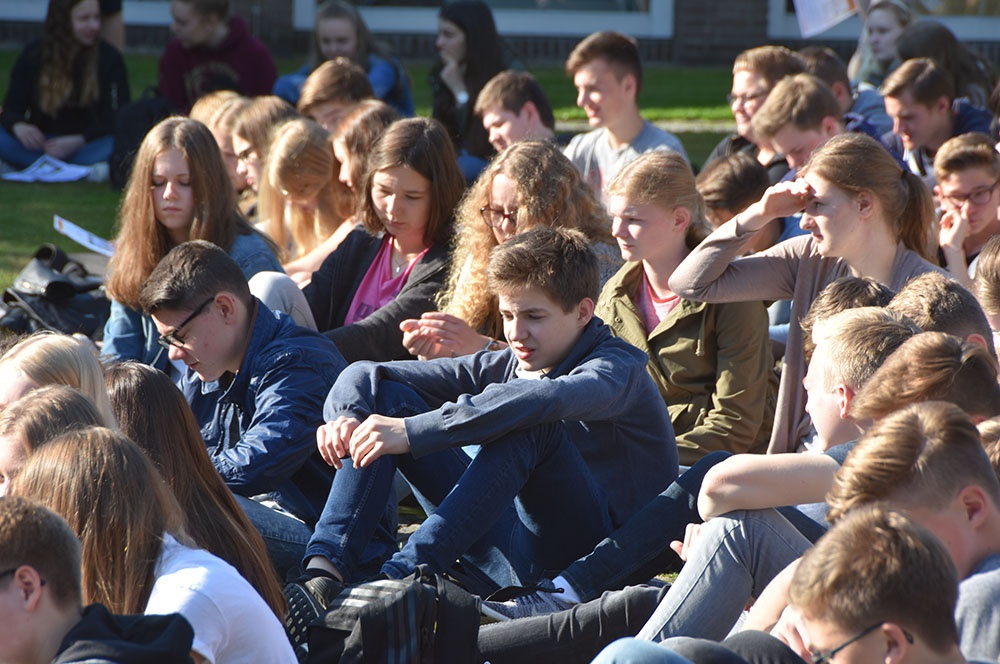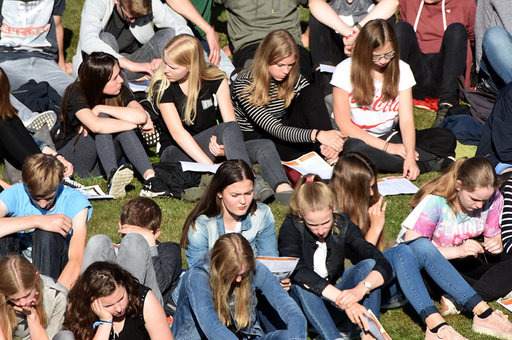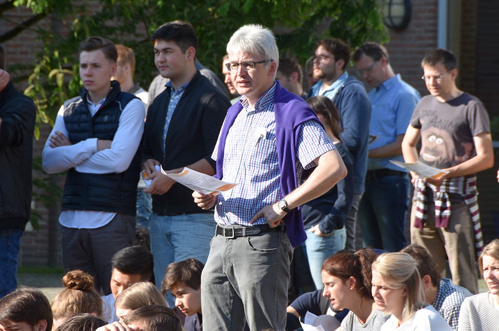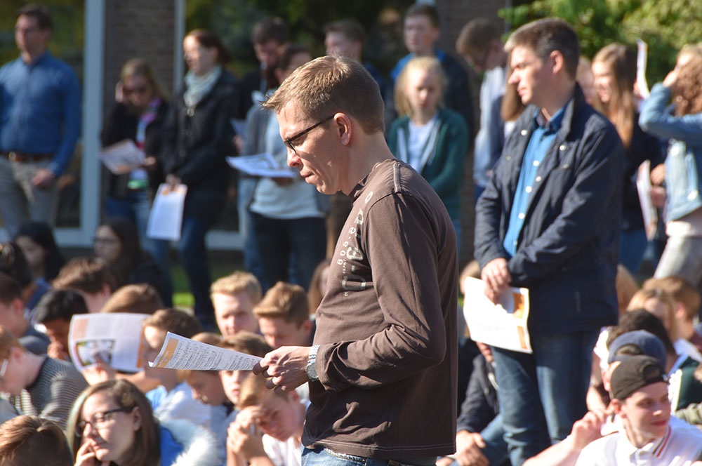 Schülerinnen und Schüler wurden von Schulseelsorger Wolfgang Rensinghoff bei bestem Wetter in die Ferien geschickt.