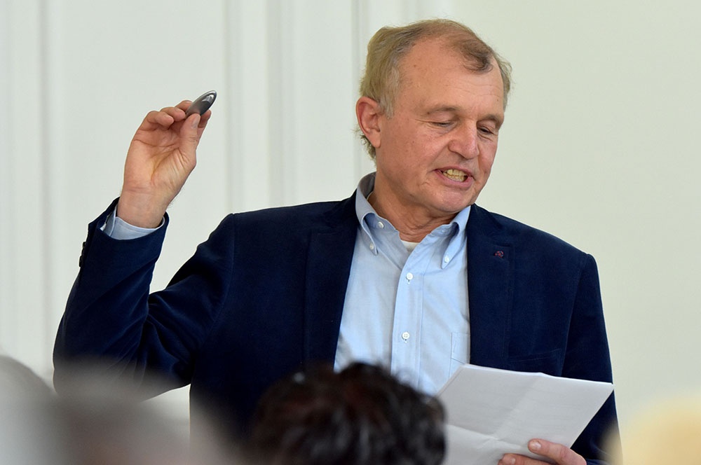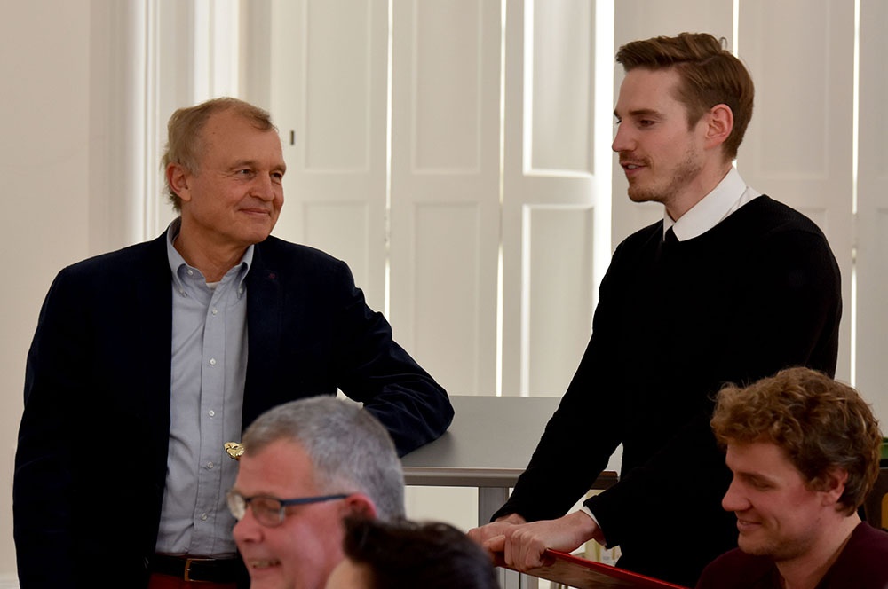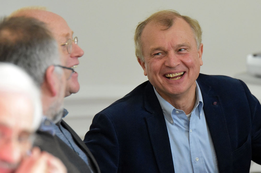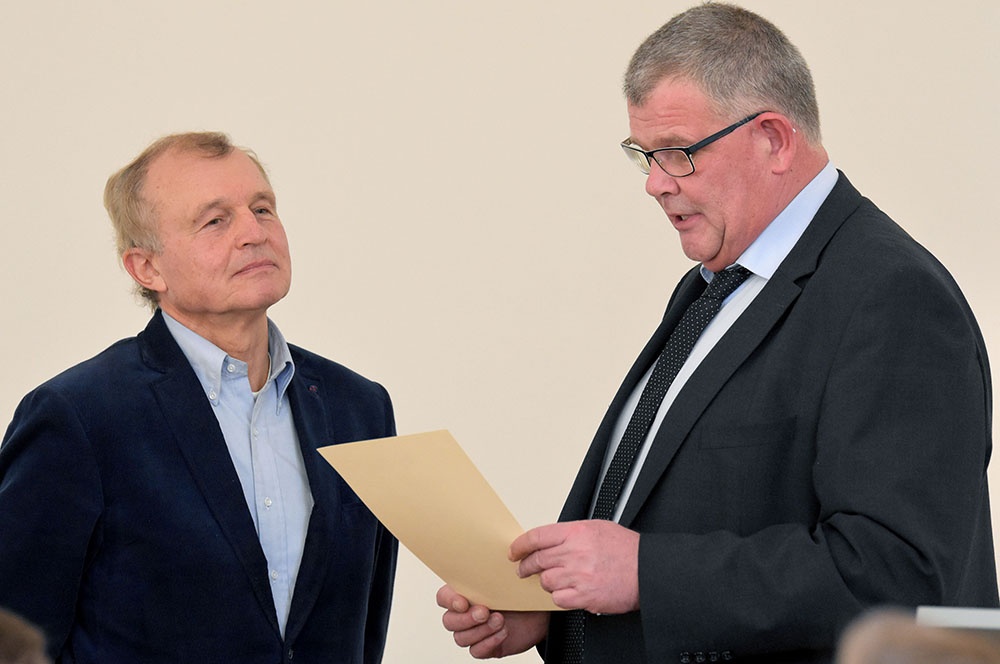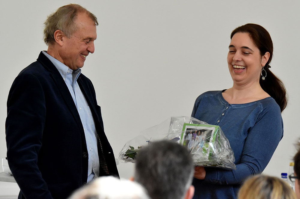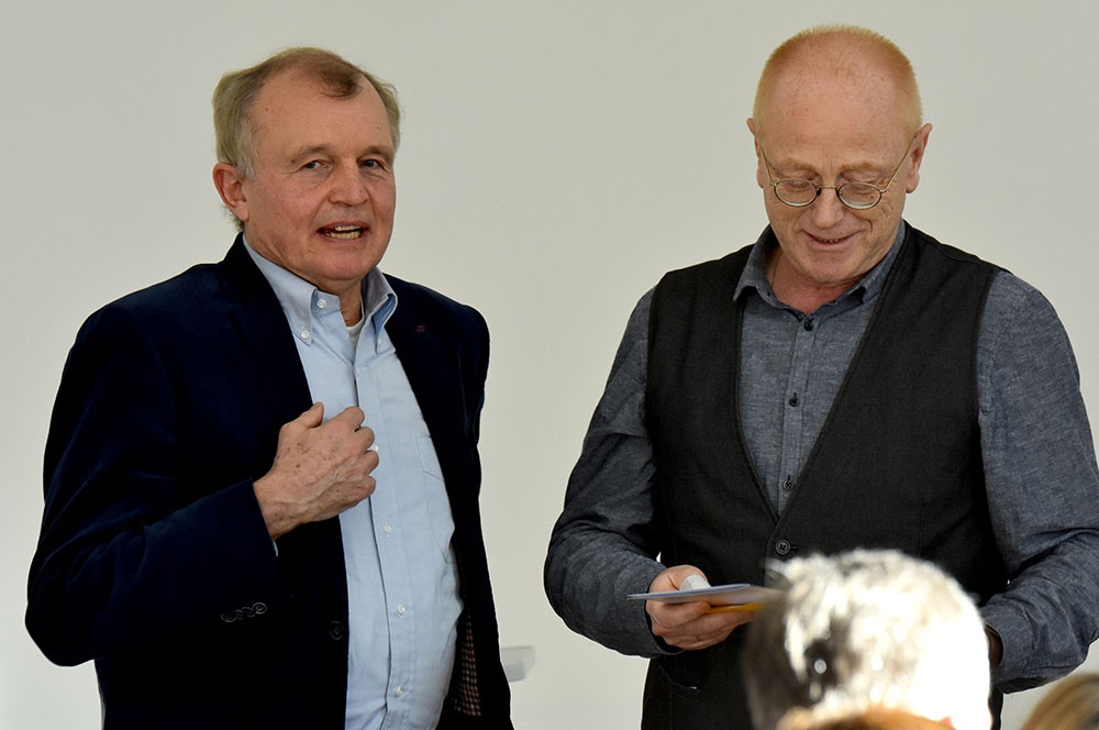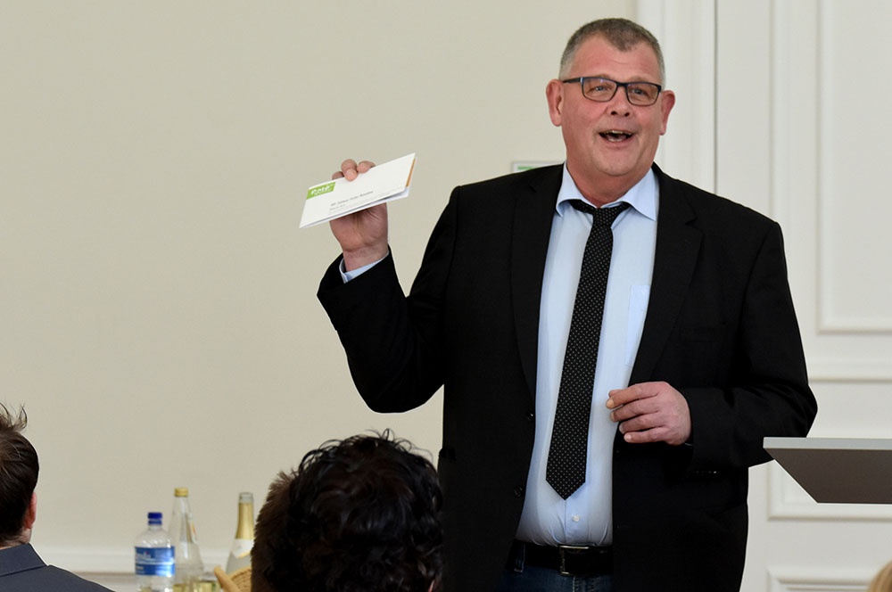 Daran schloss er einen Ausblick an, wie er in Zukunft seine Zeit füllen möchte. In Form eines kleinen Ratespiels bot er vier Lösungen an, die alle durchaus seinem Naturell entsprachen, um dann die Auflösung zu präsentieren: Er wird sich in seiner freien Zeit als ehrenamtlicher Krankenhausseelsorger engagieren, was sicherlich für die Patienten und für ihn eine Bereicherung darstellen wird.