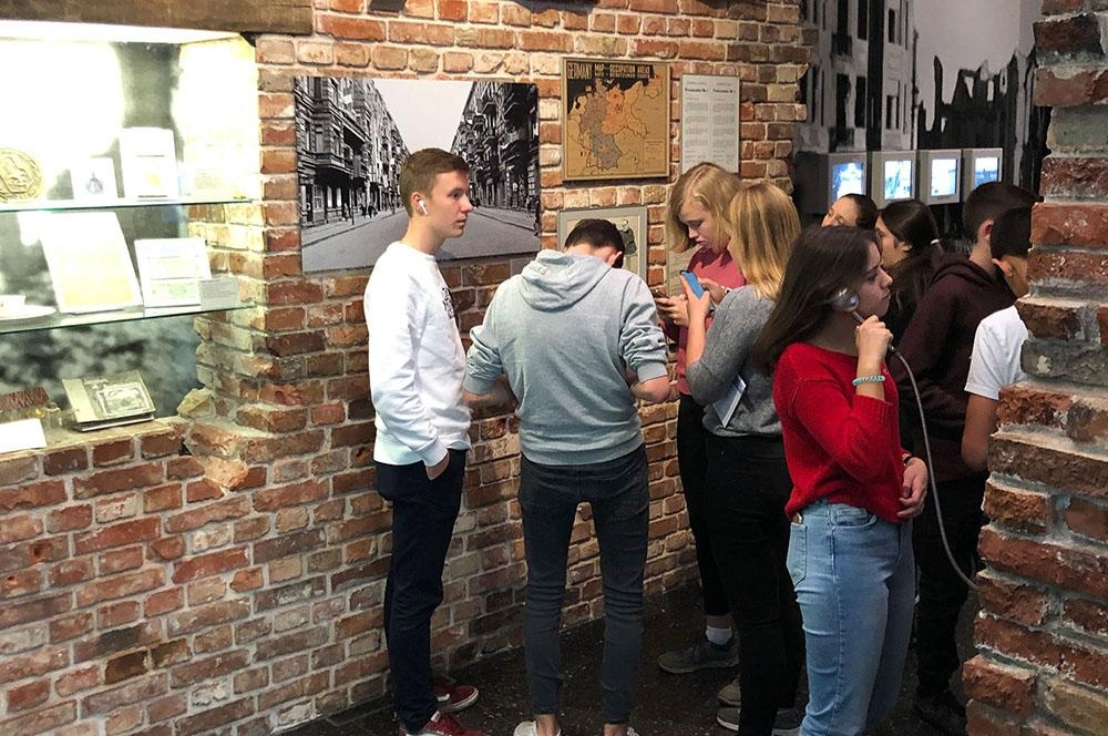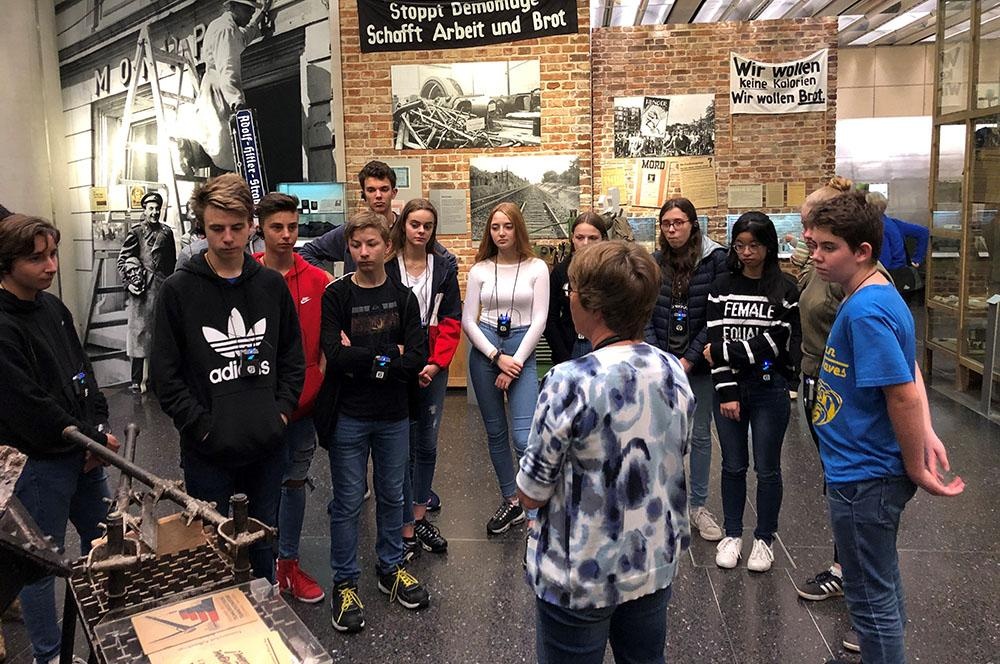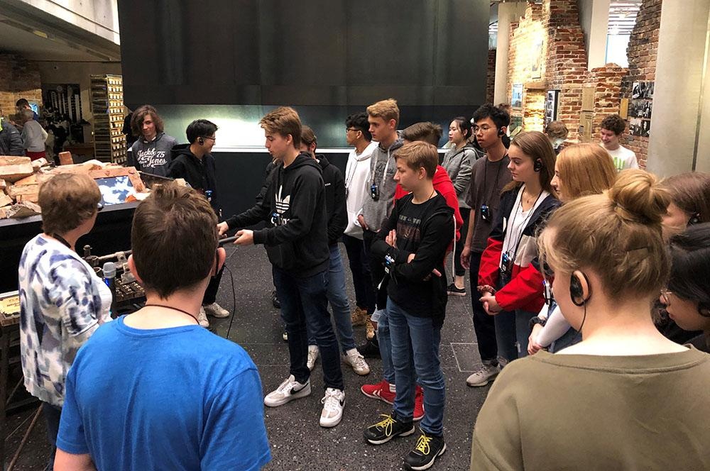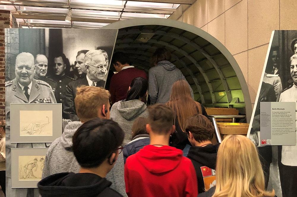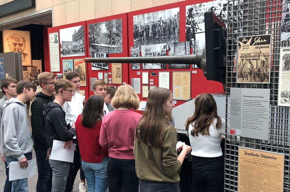 Ausgestattet mit Stöpseln, Stiften und Smartphones erkundeten die Schülerinnen und Schüler die doppelte Staatsgründung, den komplizierten Weg zur deutschen Wiedervereinigung und den Wert eines vereinten Europas. Die notwendige Orientierung im Museum boten dabei Audioguides und Materialmappen, die mit vielfältigen Aufgaben zum Erkunden des Museums einluden.