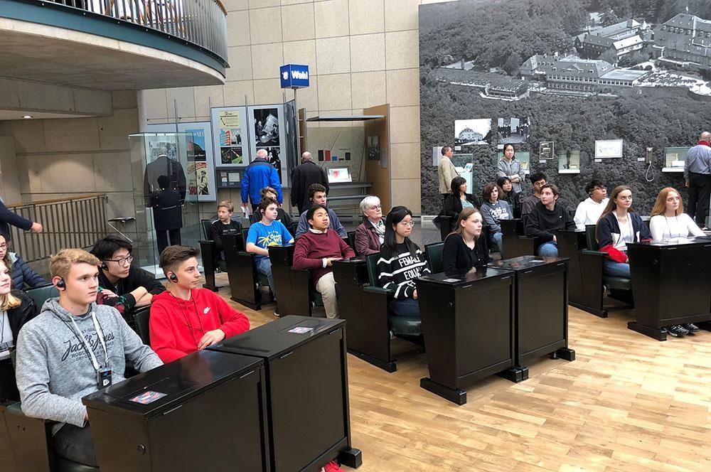 Abgerundet wurde das Programm durch das gemeinsame Ablaufen des „Weges der Demokratie“ - je nach Kurs - im Anschluss bzw. im Vorfeld des Museumsbesuches. Die bereits zu Hause vorbereiteten Schülervorträge zu den ehemaligen Regierungsgebäuden gaben dabei interessante Einblicke in die politische Gebäudelandschaft der damals noch jungen Bundesrepublik.