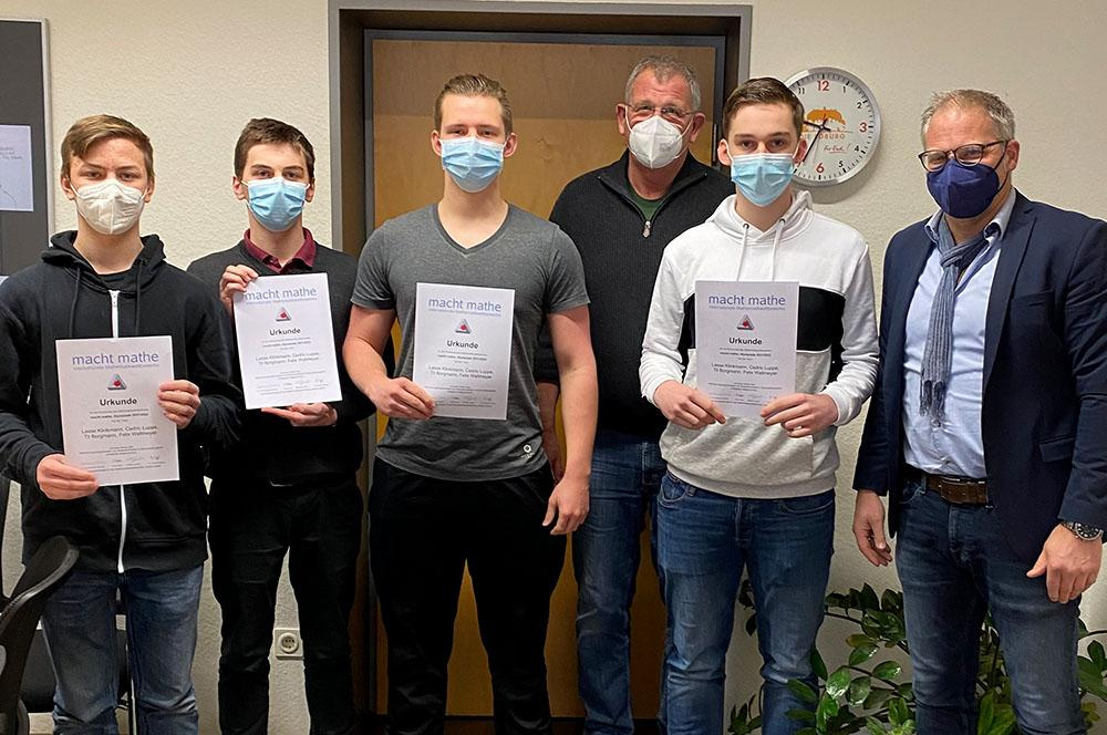 Zusammen mit den anderen besonders erfolgreichen Mannschaften aus ganz Nordrhein-Westfalen nehmen Lasse Klinkmann, Cedric Luppe, Til Borgmann und Felix Wallmeyer nun am 18. und 19.Februar 2022 am NRW-Landesfinale teil, wo sie in einem zweitägigen Vergleichswettbewerb letztlich den Sieger des diesjährigen Wettbewerbs ermitteln! Dort warten neue komplexe Problemstellungen auf unsere Mathematiker.