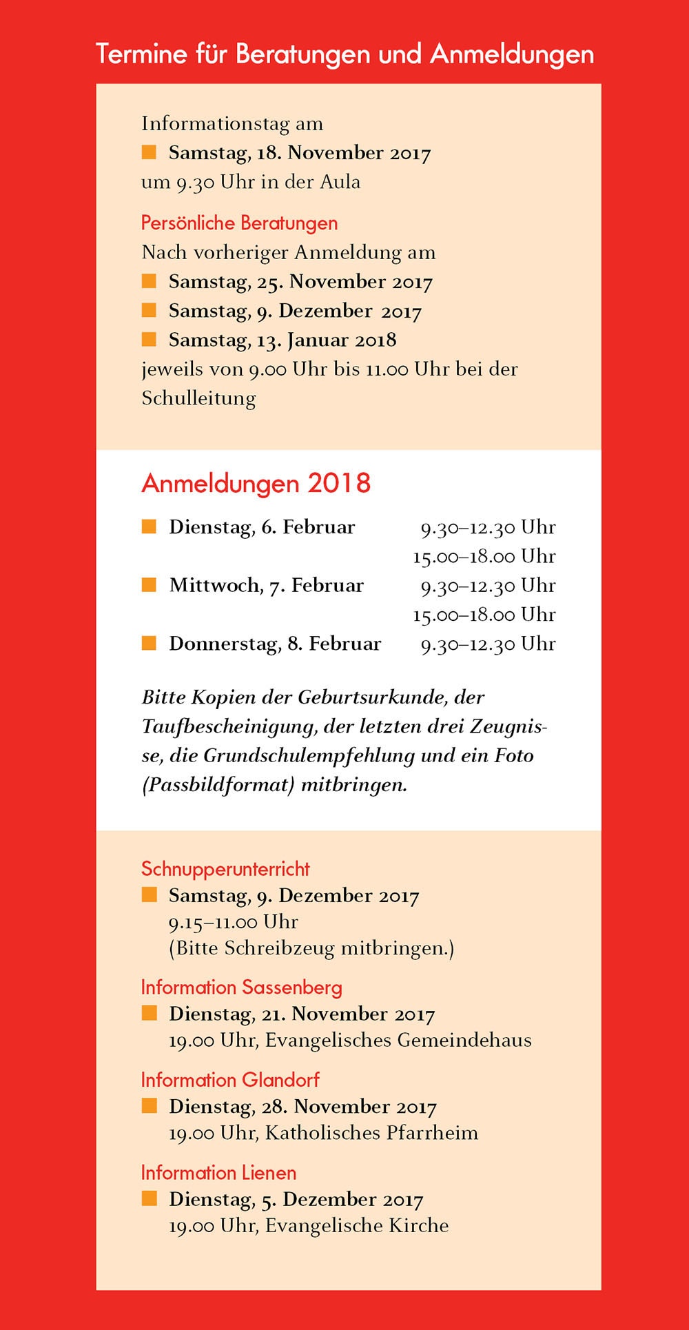 Hier finden Sie die Termine für die Anmeldung der Schülerinnen und Schüler für das neue Schuljahr.