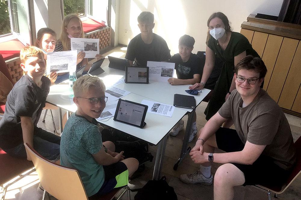 Die Schüler*innen erstellten in drei Mini-Projekten mit dem digitalen Tool (StoryMap) eine digitale Landkarte zu römischen Bauwerken in Europa, eine Learning-App mit einem Rätselspiel zu den römischen Bauwerken und einen Krimi-Podcast zum Mordfall Cäsar. Die Schüler*innen der Q1 haben sich im Vorfeld in die Thematik eingearbeitet und die Projekte dann mit der 6a in Kleingruppen umgesetzt und betreut. Sowohl für die Q1 als auch für die 6a war es eine spannende und interessante Aktion.