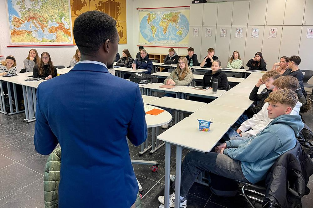 Mit einem Präsent bedankten sich die Schülerinnen und Schüler der Klasse 10b bei den beiden und zeigten sich sehr beeindruckt von dem Projekt, ihrer Arbeit und auch von dem kleinen Land Ruanda.