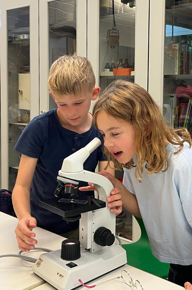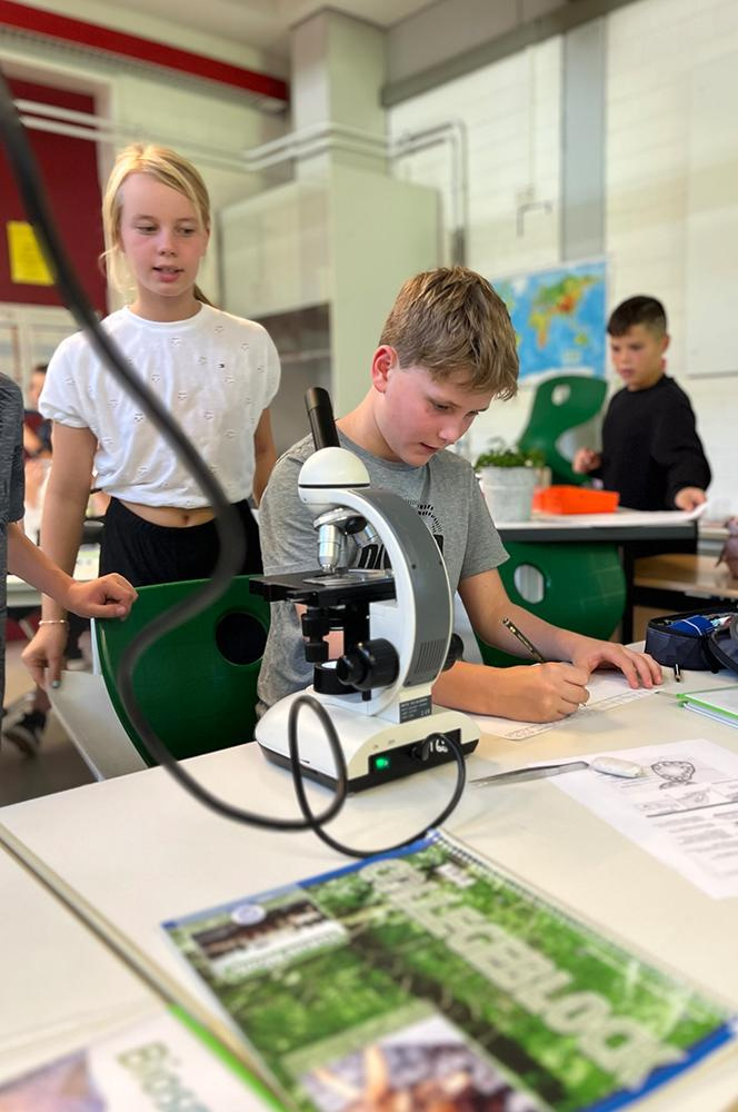 Abbildungen: Arbeiten mit dem Mikroskop in der Klasse 5.