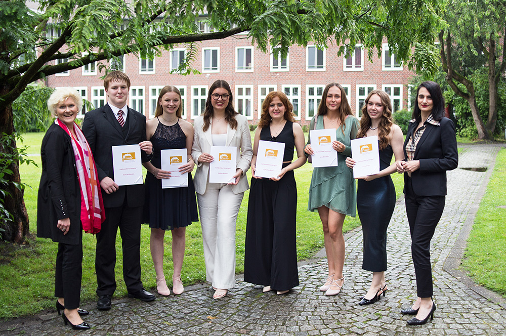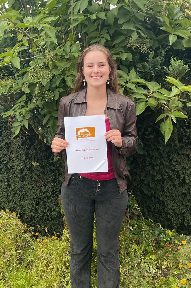 Nach dreijähriger Vorbereitungszeit war es am 21. Juni endlich soweit: Die sechs Loburger Abiturientinnen Philina Böck, Hanna Everwin, Melina Kreimer, Liana Schlee, Lina Steinbart und Dana Vosskötter sowie der Abiturient Aleksi Klinkmann hielten ihr CertiLingua-Zertifikat in den Händen. An diesem Tag wurde ihnen damit ihre europäische und internationale Kompetenz bestätigt und obwohl die Schülerinnen und Schüler am Anfang ihrer dreijährigen Vorbereitungszeit bei der Wahl ihres Auslandsaufenthaltes noch unter den Auswirkungen der Corona-Pandemie litten, gelang es ihnen, die erforderlichen Auslandsaufenthalte zu absolvieren, die abgesehen von zwei Fremdsprachen und einem Geschichts-Grundkurs auf Englisch für das Exzellenzlabel Voraussetzung sind.