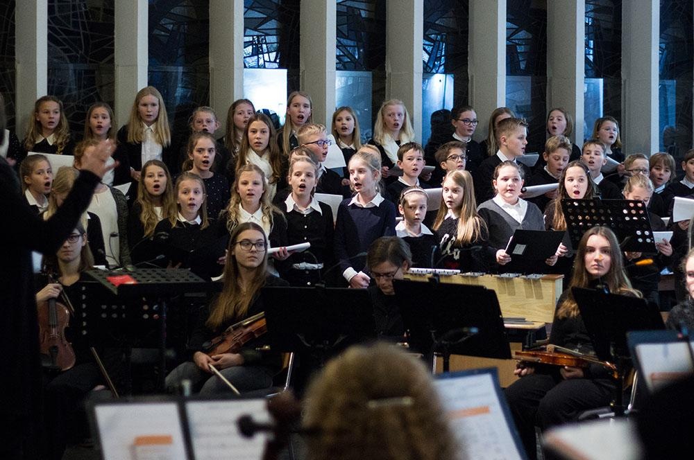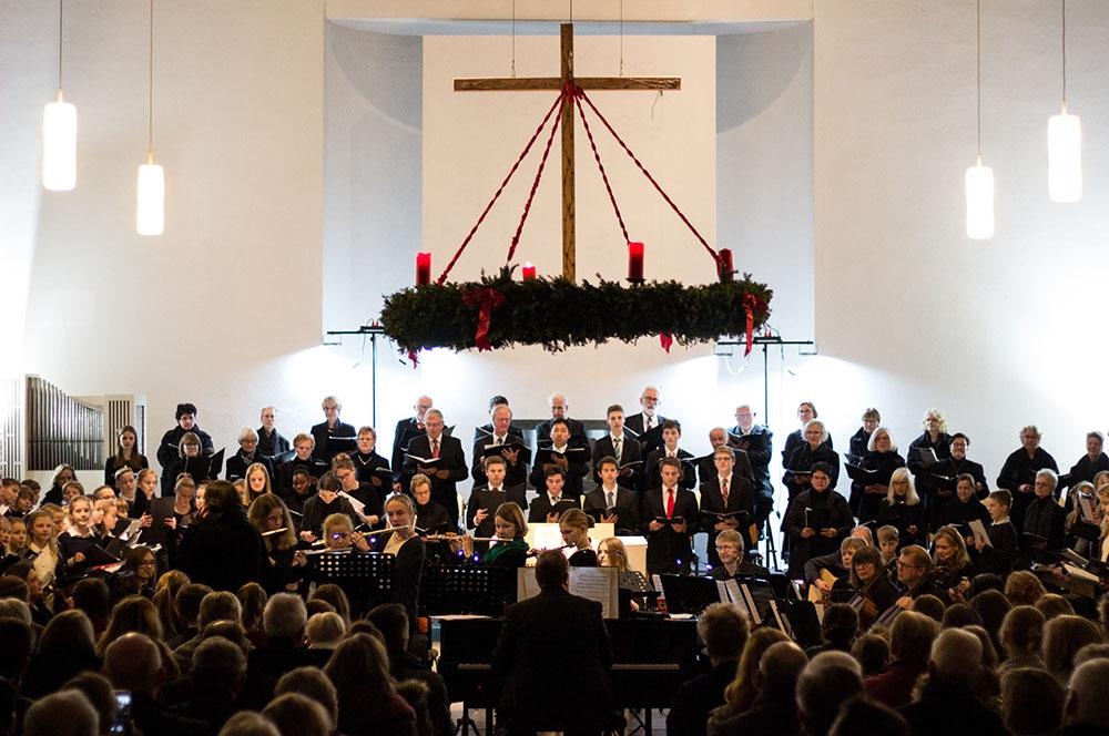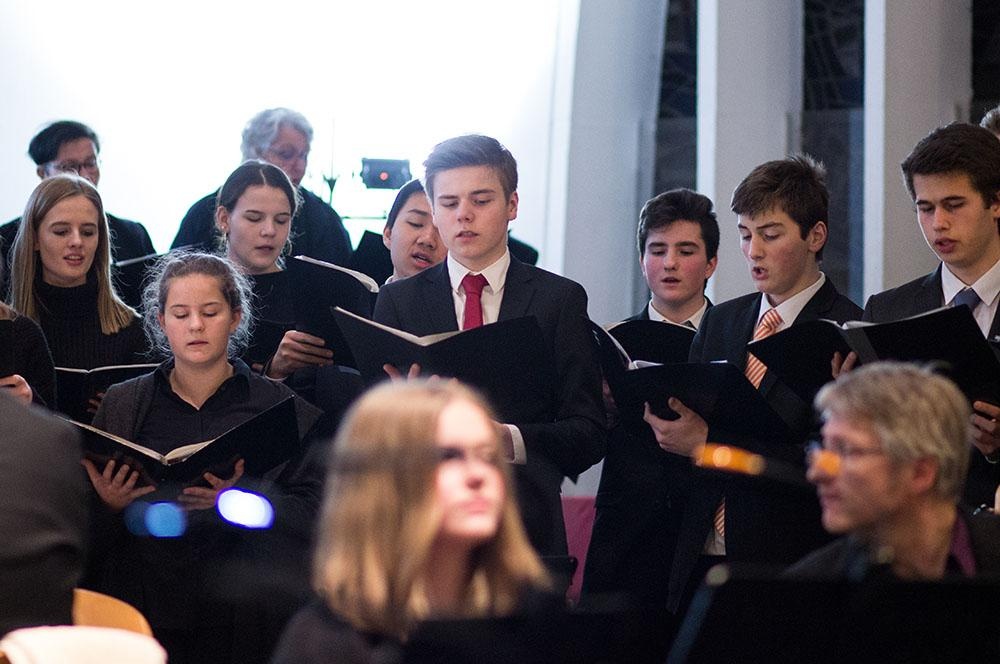 Aufgegriffen wurden diese Gedanken durch den zweiten, weihnachtlichen Teil des Konzertes, den die Sisters mit „From a distance“ eröffneten. Besonders eindrucksvoll war der Beitrag „Engel haben Himmelslieder – Gloria in Excelsis Deo“; den der Unterstufenchor zusammen mit der Capella und dem Orchester präsentierte, bevor das populären Finale anhob, in dem stimmgewaltig „Joy to the world“ und „Tollite hostias“ gesungen wurde.