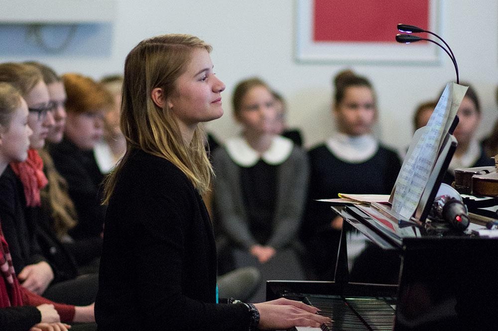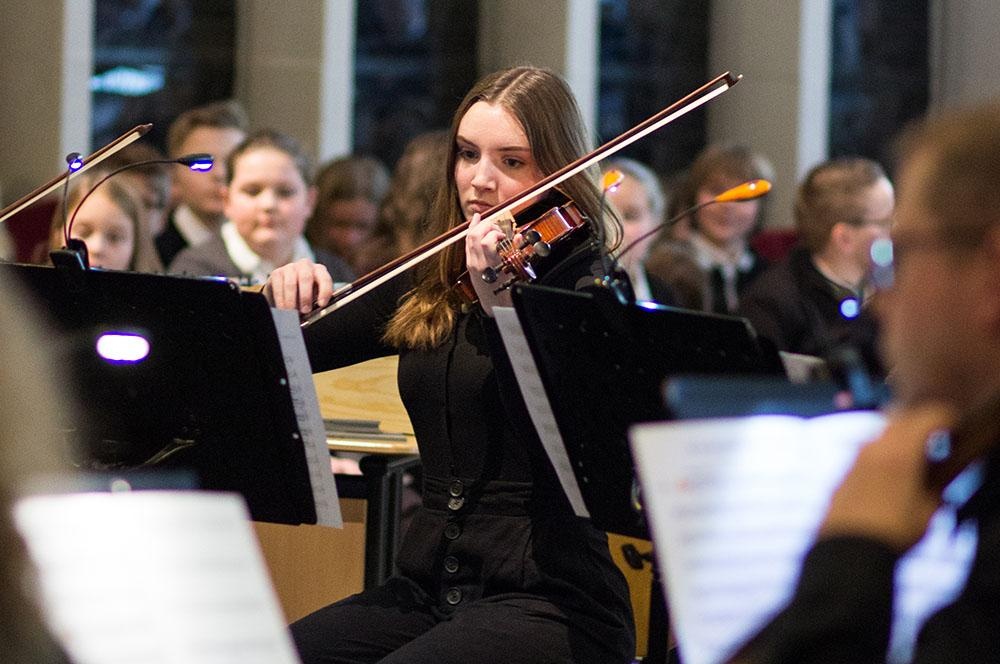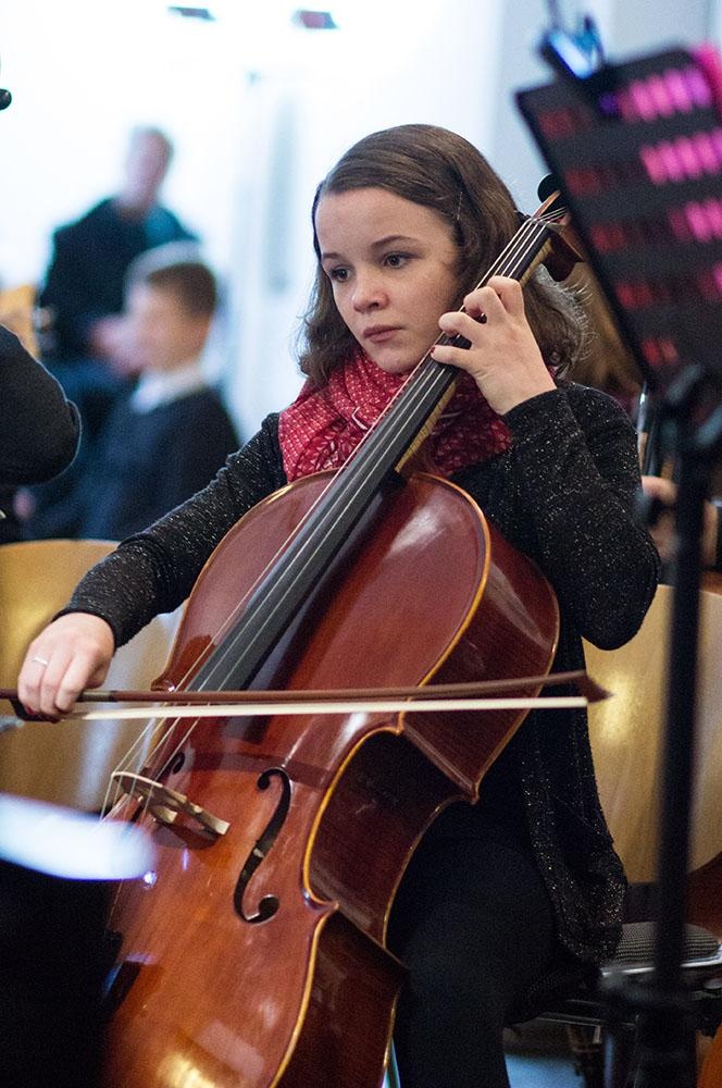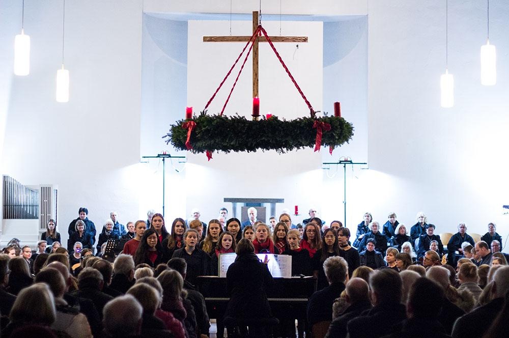 Gleich zu Beginn schuf der Unterstufenchor mit den Liedern „Volk in der Wüste“ und „Das Licht einer Kerze“ eine entspannte Atmosphäre und ließ das Publikum den vorweihnachtlichen Stress vergessen. Die Capella Loburgensis nahm das adventliche Motiv auf und brillierte vor allem mit dem Lied „Machet die Tore weit“. Die Gruppe Kunterbunt spielte zunächst „Water Music“ von G.F. Händel und leitete mit „Jingle Bells“ zum Unterstufenchor über, der danach mit der Capella zusammen „Sage, wo ist Bethlehem“ in der Bearbeitung von Matthias Hellmons zu Gehör brachte. Nach dem „Orchesterquartett C-Dur“ gespielt vom Kammerorchester, gab es neben den bekannten Melodien „Maria durch ein Dornwald ging“ und „O Heiland, reiß die Himmel auf“ auch das weniger bekannte „Stimmet Hosianna an“ zu hören, bis der adventliche Teil mit dem gemeinsam gesungenen Lied „Kündet allen in der Not“ endete.