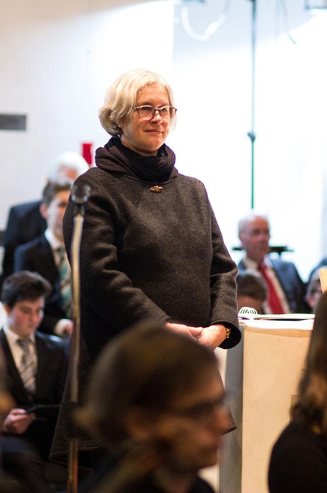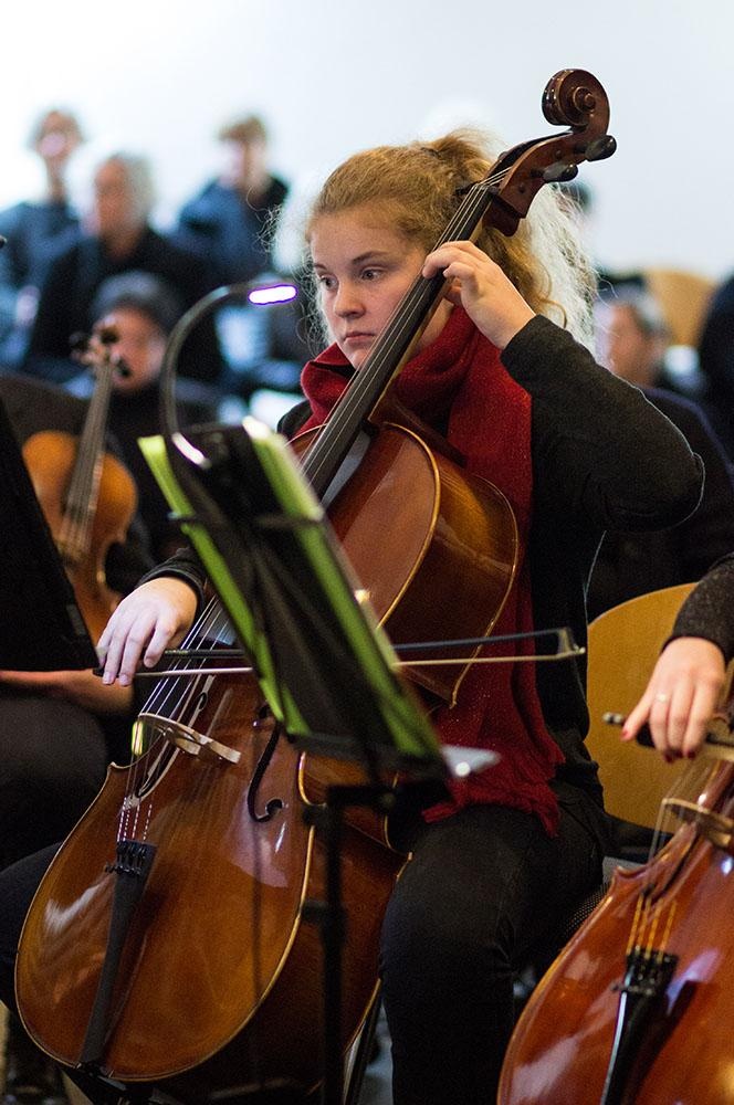 Im Namen der Stufe Q2 lud Pia Timm die Konzertbesucher ein, zum geselligen Ausklang überzugehen, und in der Pausenhalle auf einen Glühwein, Kinderpunsch oder Plätzchen vorbeizukommen.