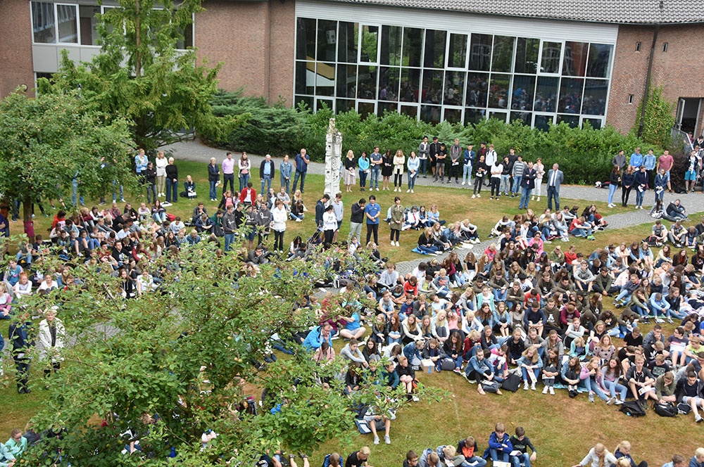 Bei strahlend blauem Himmel wurden anschließend die 29 Schülerinnen und Schüler in den Stufen 6 – Q1 begrüßt, die dieses Jahr neu an die Loburg gekommen sind. Ihnen wurde sicherlich bei dem lockeren Austausch, der sich in den Lerngruppen traditionell an den Gottesdienst anschließt, die Anspannung etwas genommen, weil sie erste Kontakte knüpfen konnten.