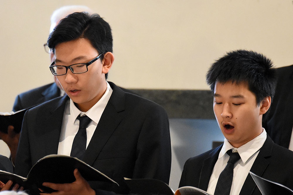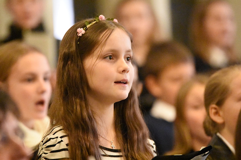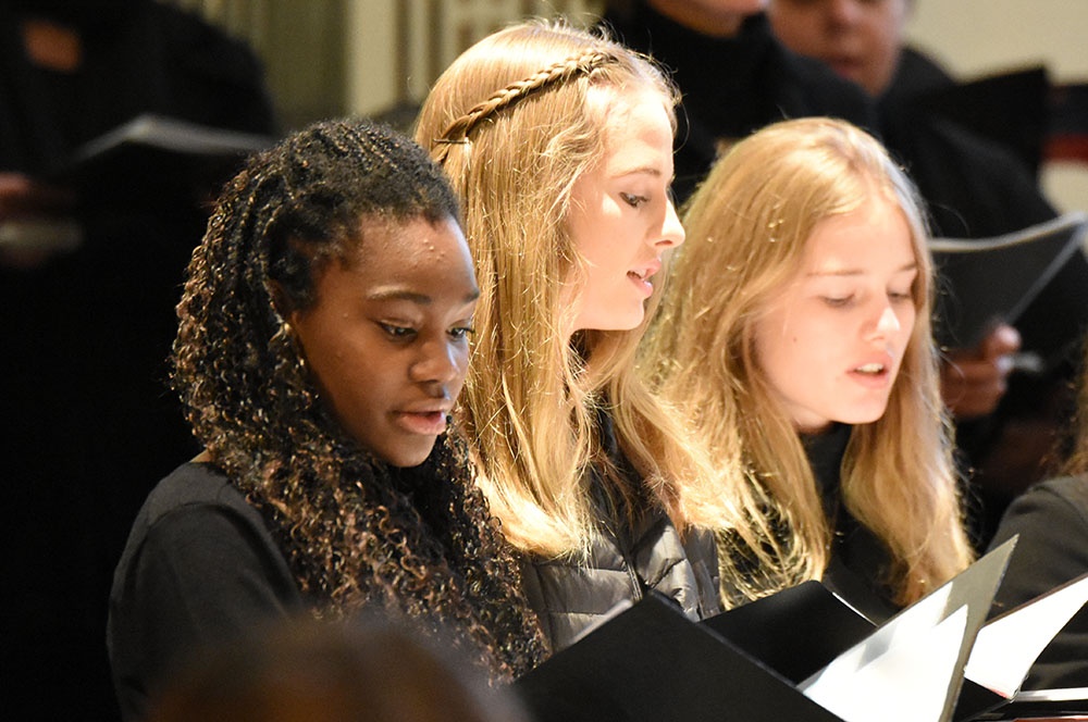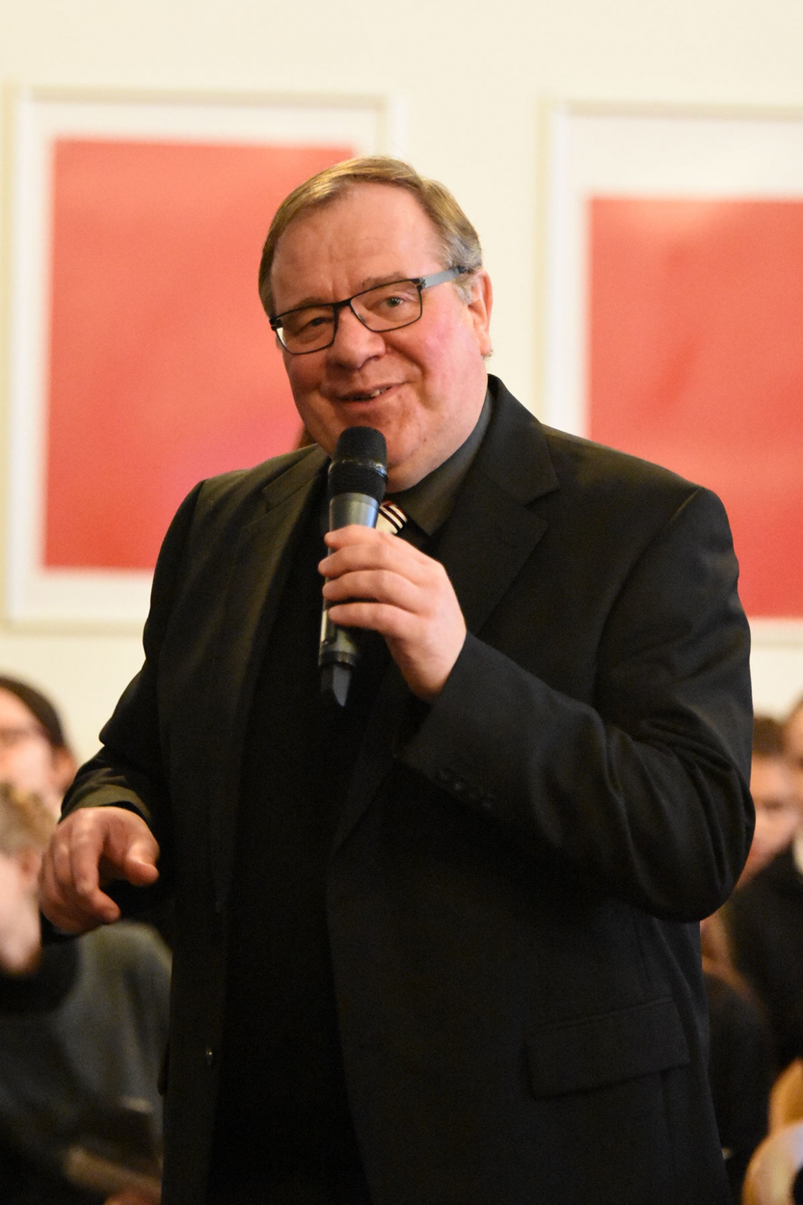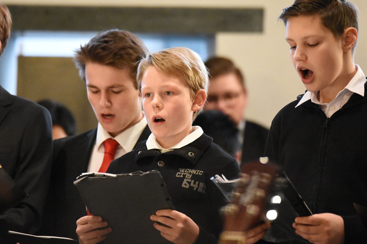 Am Ende dankte der Musiklehrer Matthias Hellmons dem Schulseelsorger Wolfgang Rensinghoff für dessen Engagement und vielseitige Arbeit während des gesamten Jahres. Außerdem lud Christina Kessler dann im Namen der Stufe Q2 ein, den Abend noch in der Pausenhalle bei Glühwein, Punsch und Plätzchen ausklingen zu lassen, bevor zum Finale alle Mitwirkenden (Knabenchor, Sisters, Capella, sowie der Unterstufenchor der Jahrgangsstufen 5 und 6) stimmgewaltig „Tollite hostias“ sangen: „Bringet Geschenke und betet an den Herrn in seinen Vorhöfen! Der Himmel freue sich, und die Erde sei fröhlich, vor dem Herrn; denn er kommt.“
