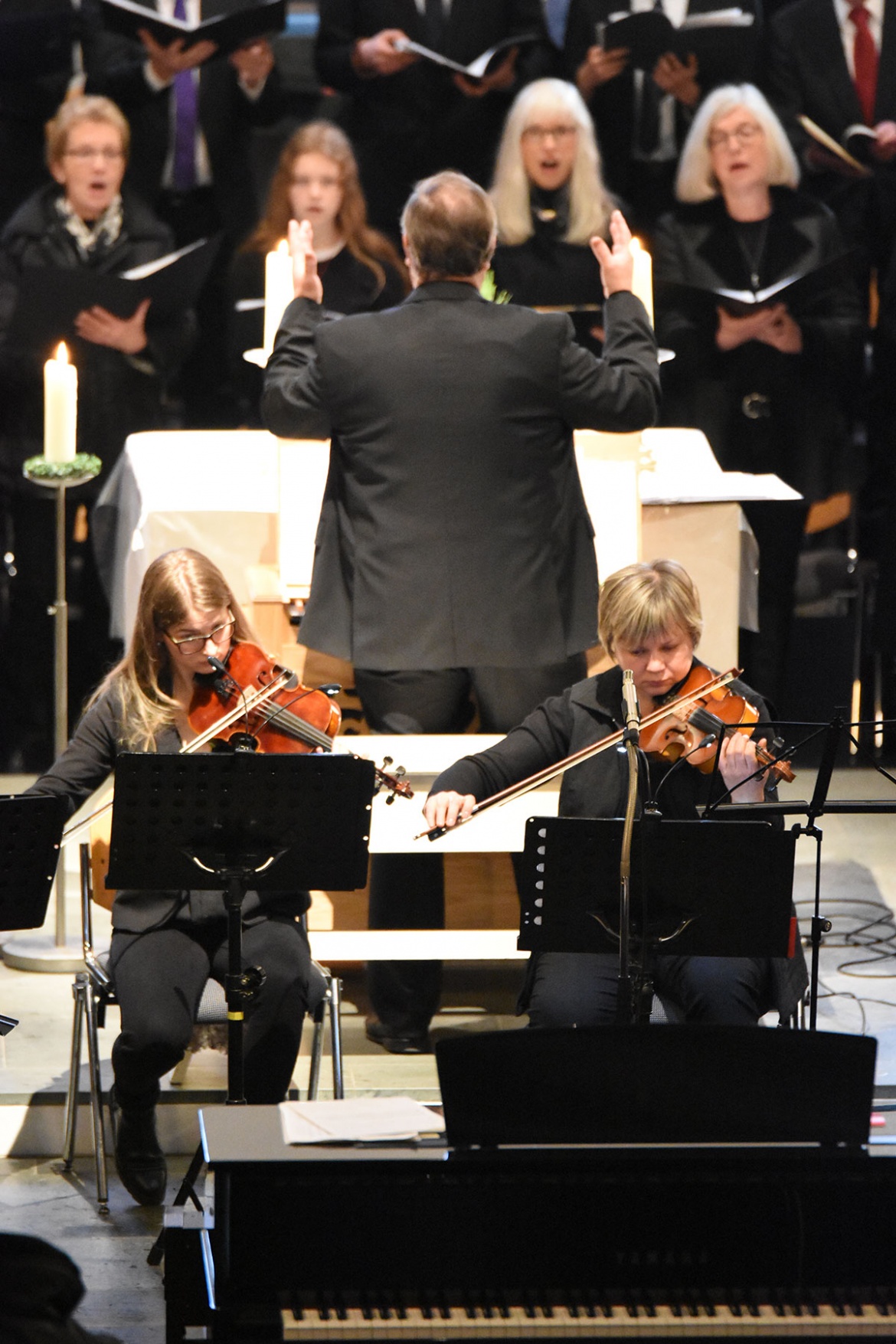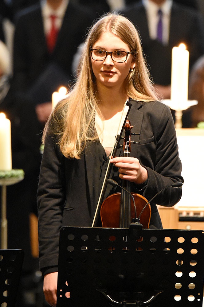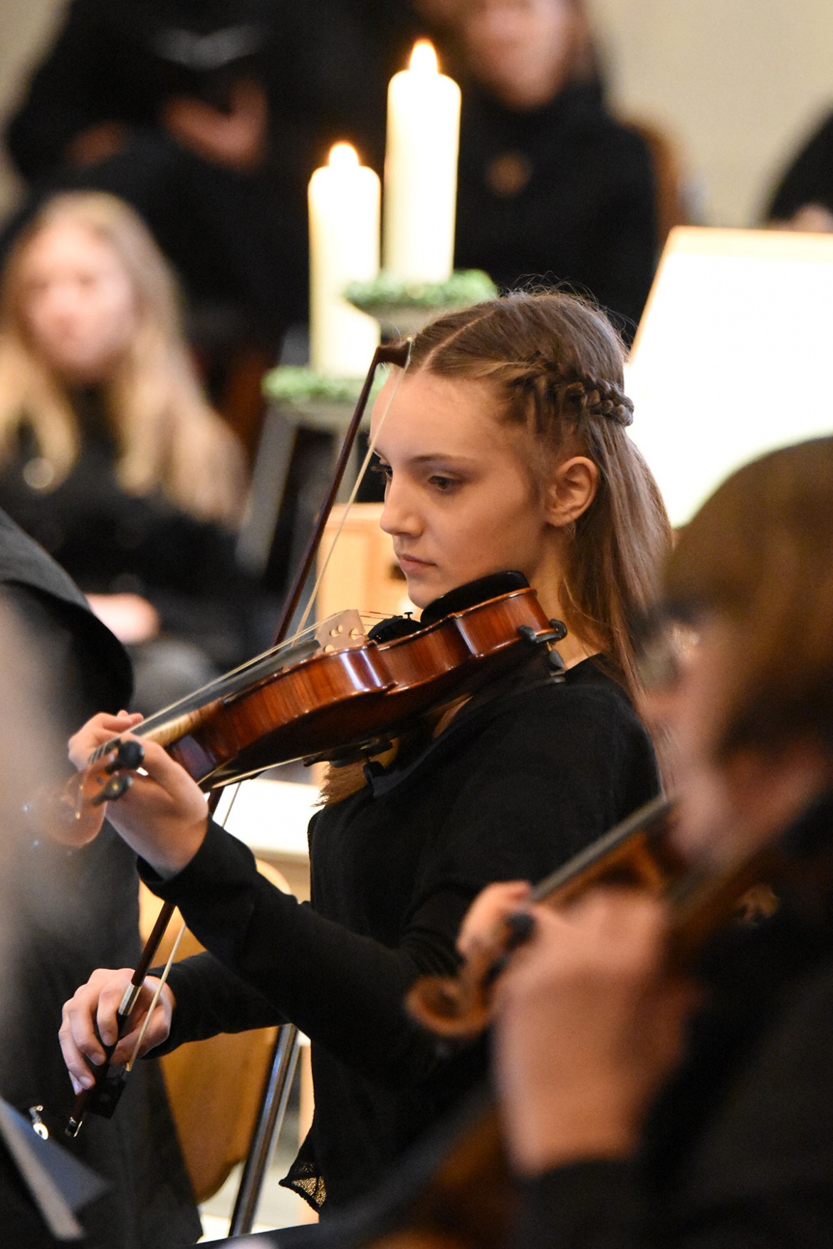 Das Kammerorchester bildete quasi die Mitte zwischen den zwei adventlichen Gesangsblöcken, in denen neben der bekannten Melodie „Stern über Bethlehem“ (Loburger Unterstufenchor) auch weniger bekannte wie beispielsweise „Give thanks“ oder „A Winter’s Tale““ (Sisters) zu Gehör gebracht wurden. Am Ende des 1. Konzertteils stimmte der Knabenchor „Macht hoch die Tür“ an, was als gemeinsames Lied fortgesetzt wurde.