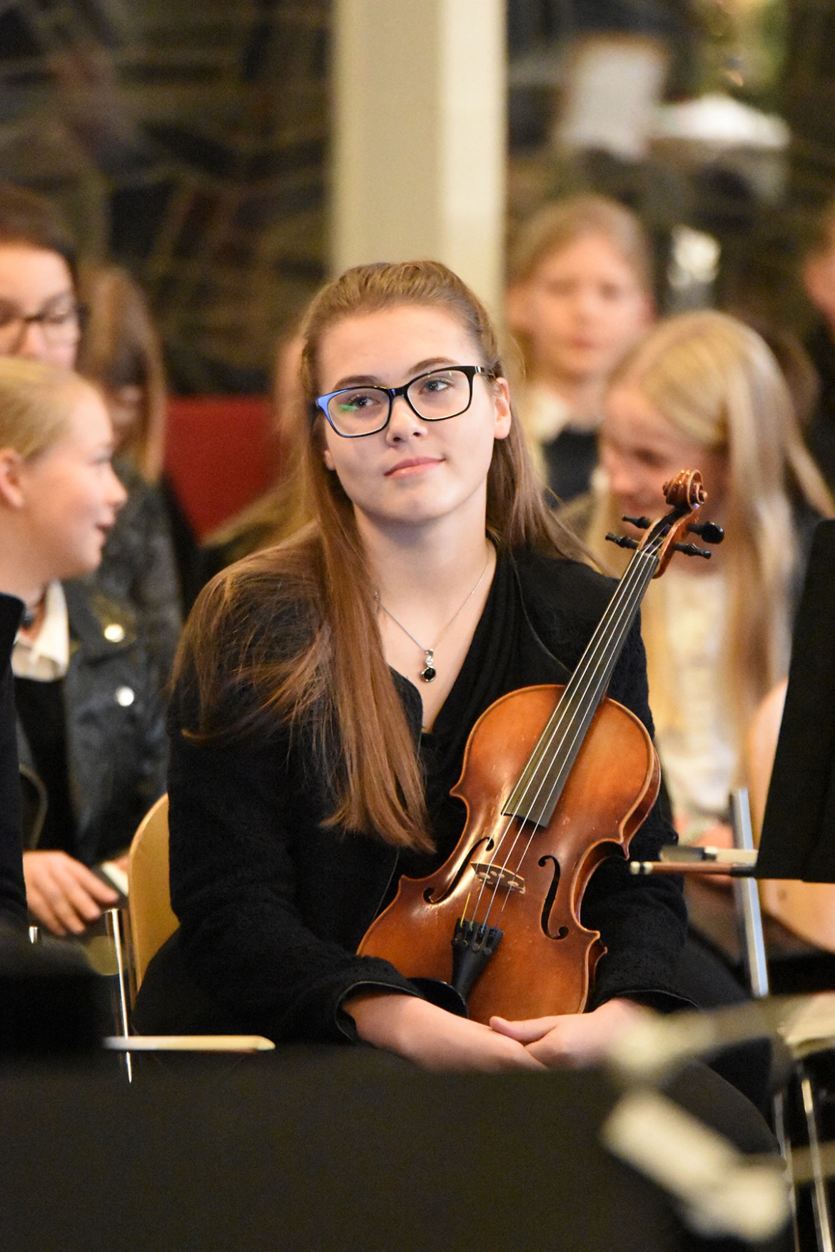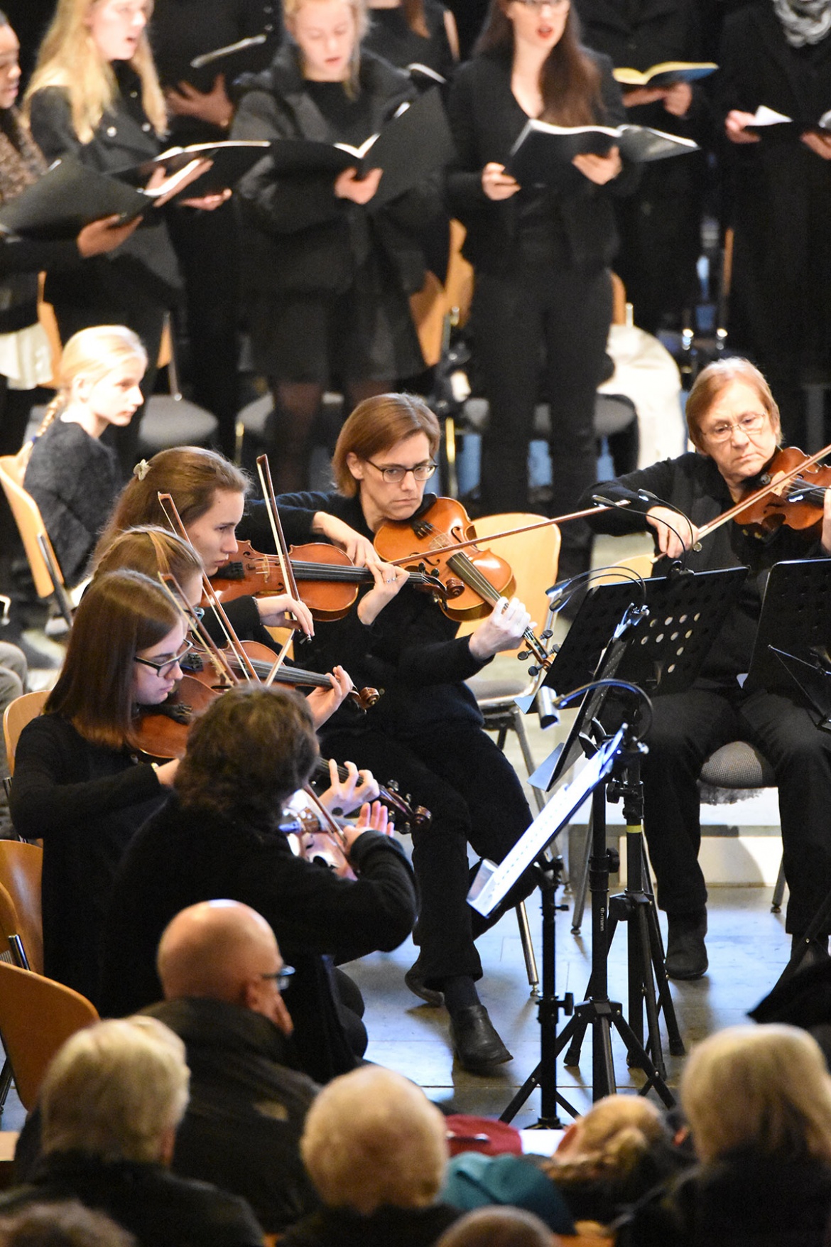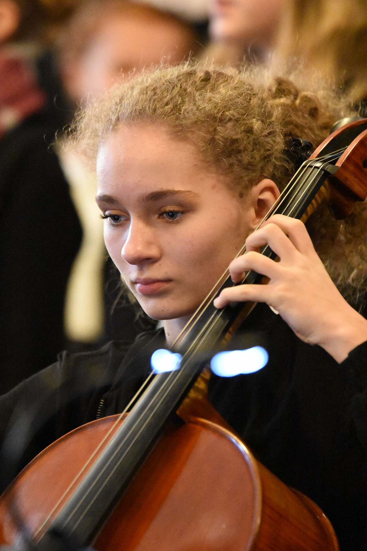 Das Kammerorchester bildete quasi die Mitte zwischen den zwei adventlichen Gesangsblöcken, in denen neben der bekannten Melodie „Stern über Bethlehem“ (Loburger Unterstufenchor) auch weniger bekannte wie beispielsweise „Give thanks“ oder „A Winter’s Tale““ (Sisters) zu Gehör gebracht wurden. Am Ende des 1. Konzertteils stimmte der Knabenchor „Macht hoch die Tür“ an, was als gemeinsames Lied fortgesetzt wurde.