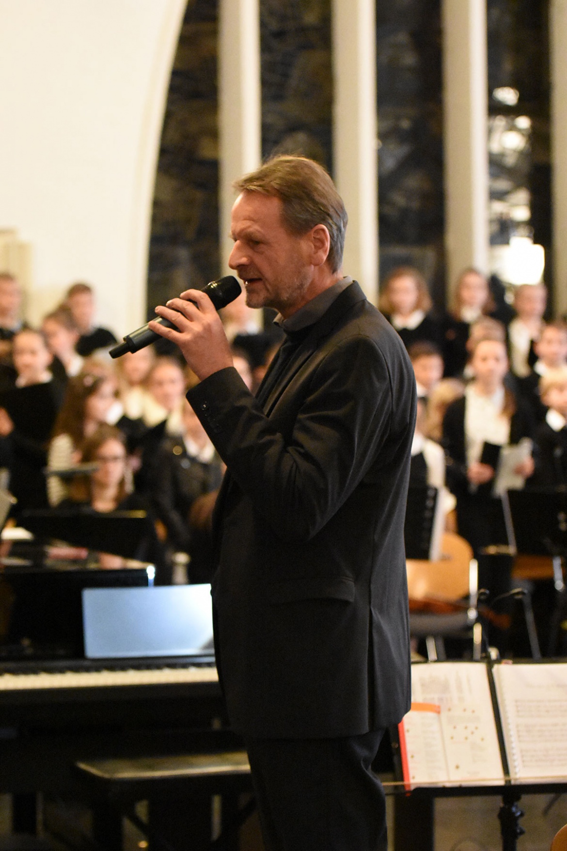 Die adventlichen Lieder, denen die Grundthematik der Erwartung der Menschwerdung Jesu gemeinsam ist, verdeutlichen, dass sich vieles ändert, wenn ein Mensch in das Leben eines anderen tritt und dass ein wesentlicher Bestandteil ist, sich darauf einzulassen, also willkommen zu sagen. So sagte auch Schulseelsorger Wolfgang Rensinghoff „Willkommen“, indem er zunächst anhand des Bildes über dem Altar, das auch zugleich das Titelbild des Konzertflyers ist, das diesjährige Motto des Loburger Advent vorstellte. Mit seiner Geschichte „Bänder im Baum“ verdeutlichte er, dass „Willkommen“ immer zwei Seiten hat, nämlich die desjenigen, der kommt sowie die derjenigen, die Willkommen heißen.