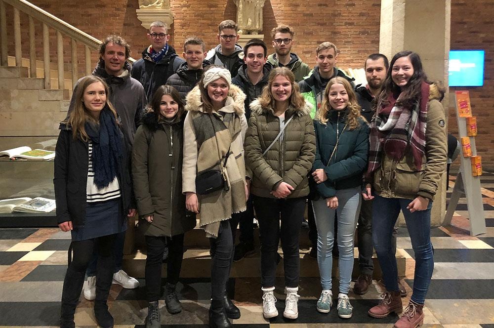 Mit dieser Fragestellung beschäftigte sich der Geschichts-LK (Q1) von Herrn Hergemöller nicht nur im vorweihnachtlichen Unterricht, sondern auch nach Schulschluss direkt vor Ort im Friedenssaal von Münster. Eine Führung durch ausgewählte Stationen der Altstadt, im Rahmen derer auch der Friedensaal besichtigt werden konnte, vermittelte einen nachhaltigen Eindruck von der aufwändigen und kleinschrittigen Aushandlung des Friedensschlusses. Die besondere Leistung der Zeitgenossen, einen Frieden auszuhandeln, der die über 30 Jahre andauernden, ungemein gewaltvollen Auseinandersetzungen zwischen Katholiken und Protestanten bzw. der europäischen Mächte und Herrschaftshäuser über eine so lange Zeit beilegen konnte, wurde dabei besonders deutlich. Inwiefern der Friedensschluss als Blaupause für eine mögliche Lösung für konfessionell und politisch motivierte Konflikte in der Gegenwart, z.B. im Nahen Osten, angesehen werden kann, bot im Anschluss reichlich Stoff zur Nachbesprechung und Diskussion im Unterricht.