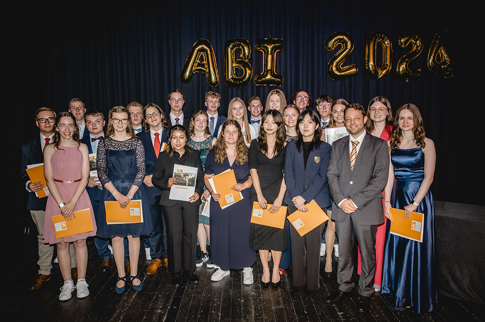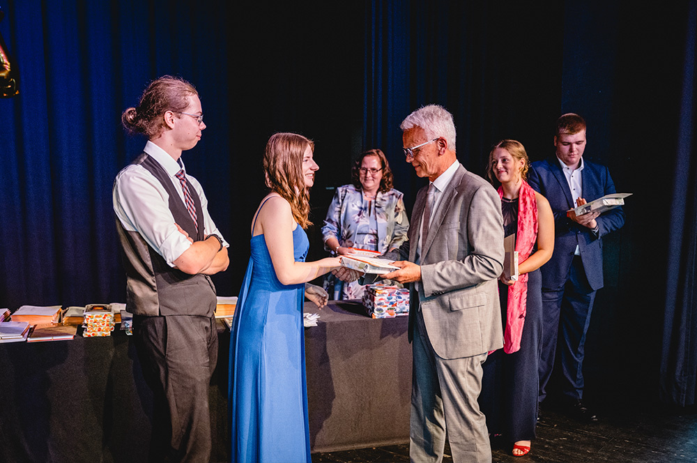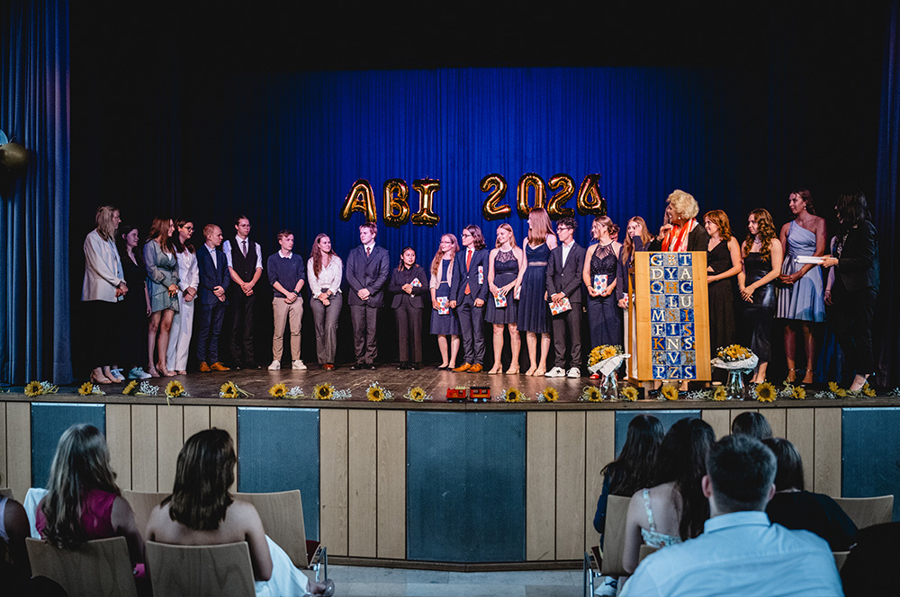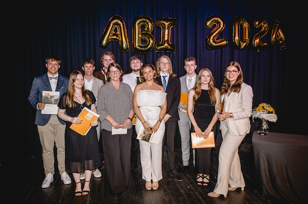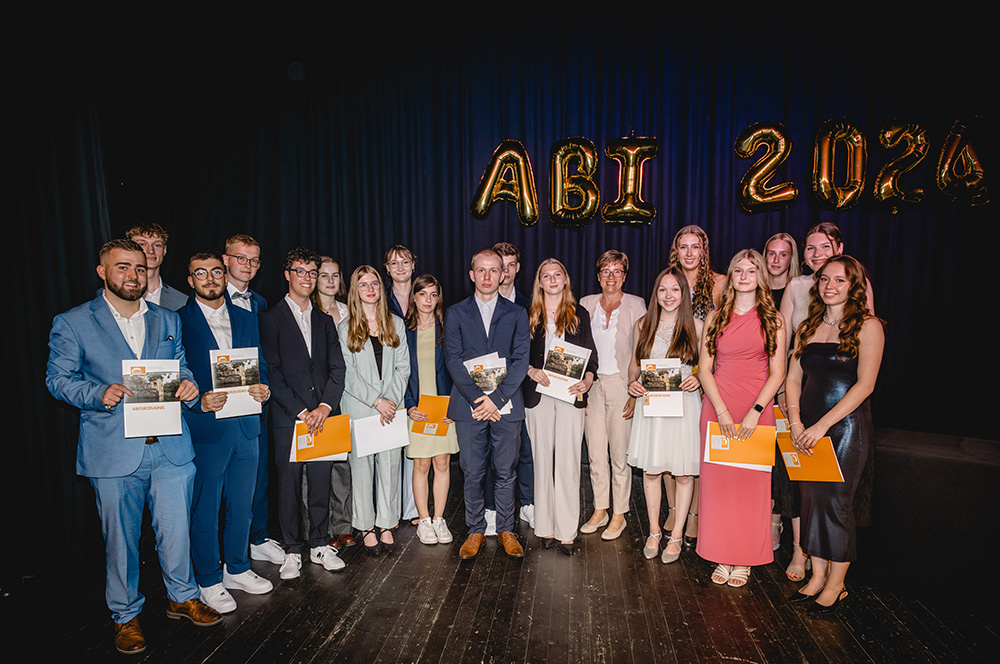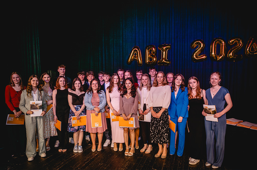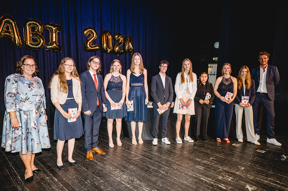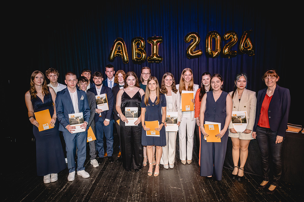 Bevor die Abiturzeugnisse verliehen wurden, nahm Schulleiterin Anja Stiglic die Ehrung besonderer Leistungen vor. Unter anderem wurden diejenigen mit einem Abiturdurchschnitt von 1,0 geehrt, namentlich Johanna Burkhardt, Hanna Everwin, Maren Heßling, Julius Käller, Marie Keuchel, Jona Lückener, Thea Schulte im Rodde, Pauline Wallmeier und Yi Xia. Auch die AbsolventInnen des CertiLingua- Exzellenzlabels wurden ausgezeichnet- dies waren Philina Böck, Hanna Everwin, Aleksi Klinkmann, Melina Kreimer, Liana Schlee, Lina Steinbart und Dana Vosskötter.