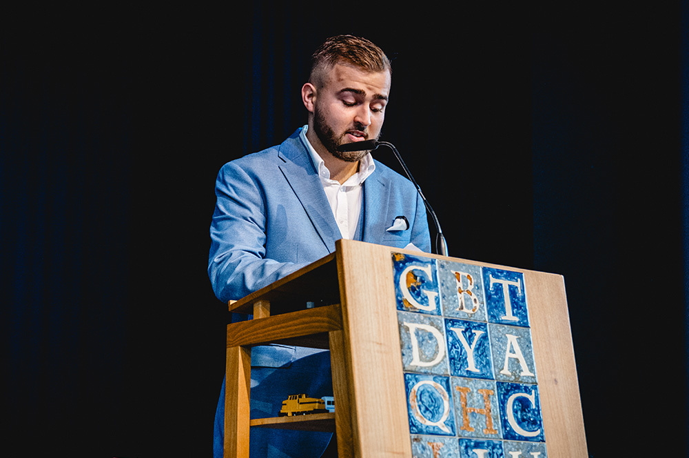 Unter großem Jubel betrat als nächster Lennart Noll, seines Zeichens Stufensprecher, die Bühne. Er beschrieb die typischen Klausursituationen mit „Dextro und Bäckertüte“, bedankte sich ausdrücklich bei den LehrerInnen der Stufe und schloss mit den humorvollen Worten: „Glaubt fest an euch. Und immer ganz entspannt bleiben.“