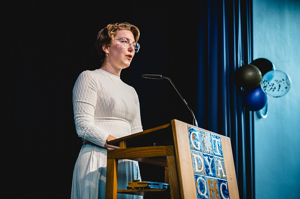 Die Elternschaft wurde anschließend von Esther Luppe vertreten, die die Wehmut darüber betonte, dass es nun kein „nächstes Mal“ mehr gäbe, da das Ende des gemeinsamen Weges an der Loburg erreicht sei. Sie ermutigte die „Kinder“, nun mutig und risikobereit eigene Akzente zu setzen und Wege zu beschreiten, bei denen sie weiterhin von ihren Eltern begleitet werden würden. „Und wenn ihr die Wahl habt, dann wählt immer die Freundlichkeit“, so Frau Luppe.