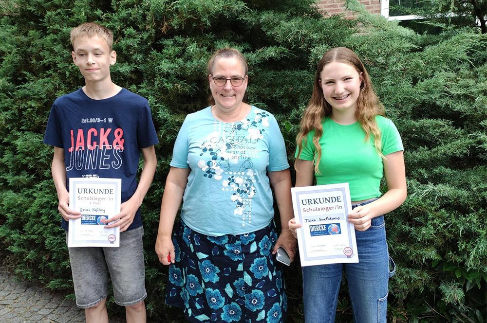 Egal ob Fragen zum geographischen Allgemeinwissen oder Aufgaben mit topographische Karten in die Flüsse und Städte eingezeichnet werden mussten – die Achtklässlerin hat alle Aufgaben souverän gelöst. Auch amorphe Kartendarstellungen konnte sie deuten und setzte sich somit in der finalen Runde gegen Henry Gerbert (Platz 2, EF) und Jonas Heßling (Platz 3, 9c) durch. Allen Siegern gratulieren wir zu ihrem Wissen und freuen uns schon auf ein spannenden Wettbewerb im nächsten Jahr.