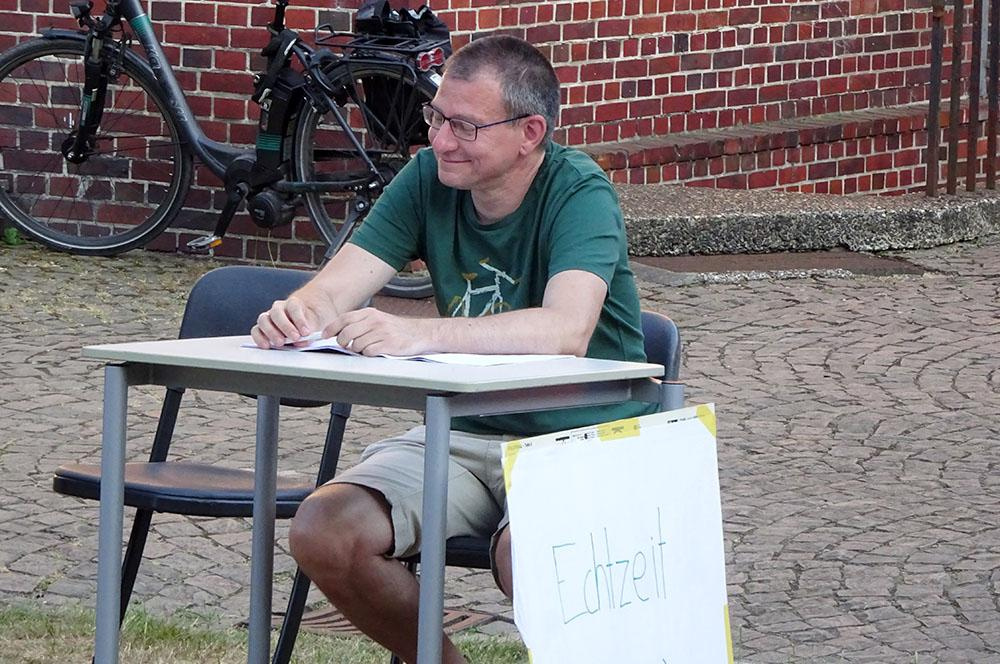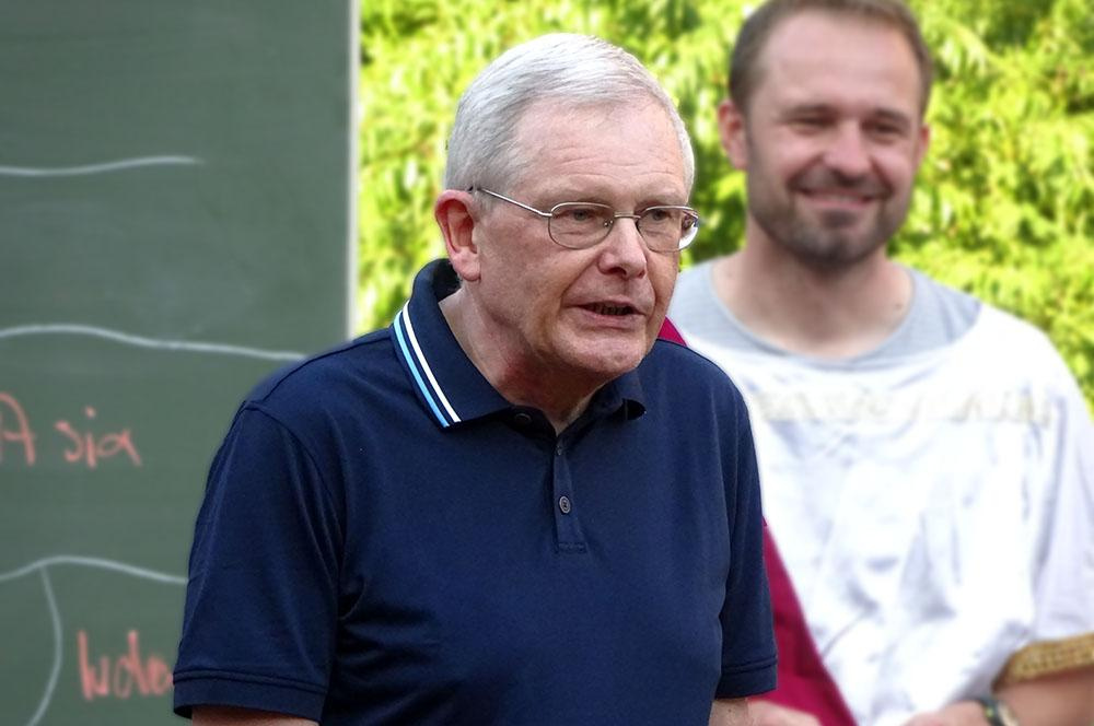 Michael Bertels bedankte sich als Schulleiter für seinen großen Einsatz für die Loburg in den vergangenen 34 Jahren. Dr. Ulrich Beuckmann unterrichtete zunächst die Fächer Altgriechisch und Latein, später dann nur noch das Fach Latein. Zeitweise übernahm er auch Unterricht in den Fächern Geschichte und Philosophie. Herr Bertels verwies darauf, dass Ulrich Beuckmann jahrelang im Fach Russisch den Fachvorsitz bei Abiturprüfungen innehatte. Über den Unterricht hinaus habe es Ulrich Beuckmann u. a. übernommen, viele Jahre lang die Lehrerbibliothek zu verwalten und die „Trainings und Extratouren“ zu organisieren. Zuletzt habe er noch – zusammen mit dem Lernbüro des Internats – die Kurse organisiert, die die Schule zur Aufarbeitung der durch Corona hervorgerufenen Defizite angeboten hat. Ulrich Beuckmann habe bei den Schülerinnen und Schülern schon allein aufgrund seiner Fachkompetenz hohes Ansehen genossen, auch schlechtere Noten seien nicht infrage gestellt worden. Michael Bertels erinnert sich noch heute gerne an eine Studienfahrt nach Rom, an der er als Begleitperson teilnehmen durfte – er habe nie wieder auf einer Fahrt so viele Informationen über Bauwerke und andere Sehenswürdigkeiten bekommen.