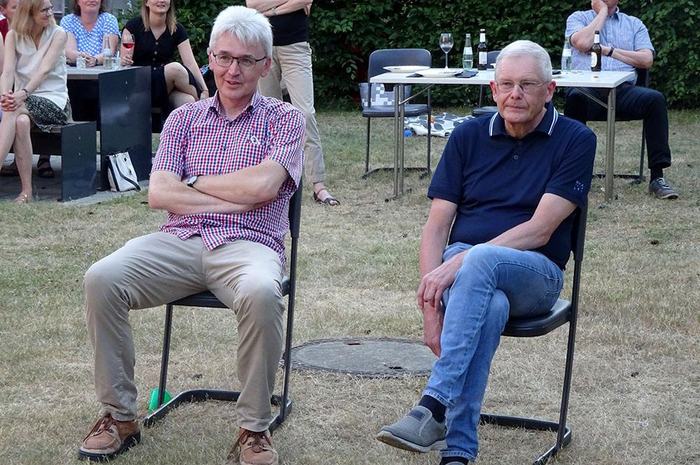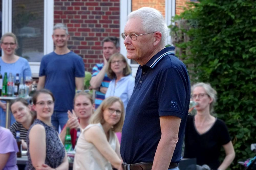 Dr. Ulrich Beuckmann bedankte sich für die Worte zur Verabschiedung. Besonders schön sei es, dass zwei seiner ehemaligen Lateinschüler nun selbst dieses Fach unterrichten. Er sei immer gern zur Schule gekommen, unter anderem wegen des guten Zusammenhalts im Kollegium. Diesen zu bewahren, sei sicherlich ein wichtiges Ziel für die kommenden Jahre. Er versprach, Kontakt zur Schule und zur Fachschaft zu halten.