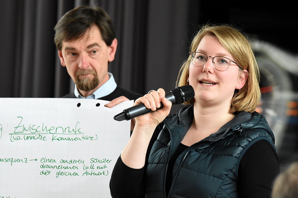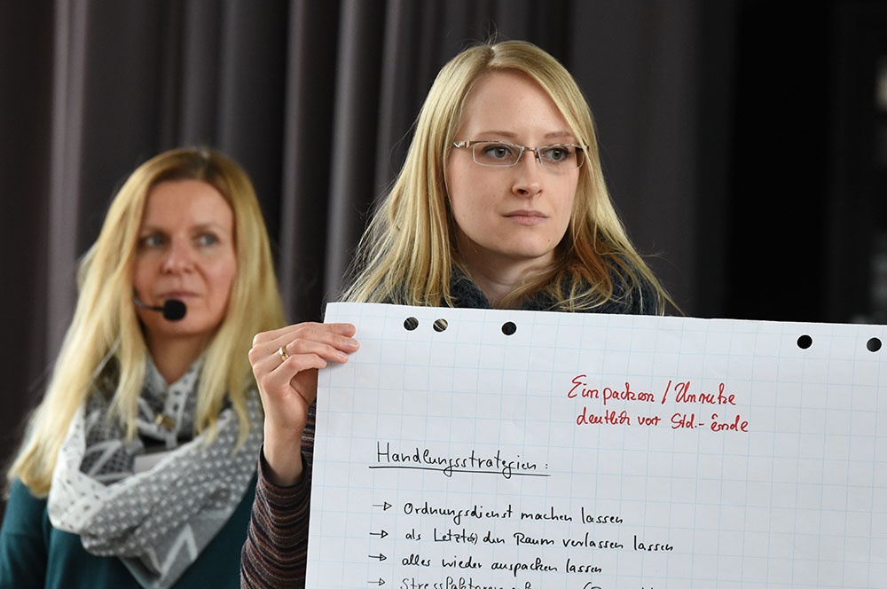 Am gestrigen sogenannten pädagogischen Tag versammelte sich die Loburger Lehrerschaft in der Aula, um sich zum Thema „Classroom Management“ fortbilden zu lassen. Koordinatorin Christina Fietz hatte zu diesem Anlass die Referentin Katja Liever vom Institut für Lehrerfortbildung eingeladen. Im Kern ging es in drei Arbeitseinheiten darum, wie der Lehrer Unterrichtsstörungen vorbeugen kann und welche Interventionsmöglichkeiten bei konkreten Störungen zur Verfügung stehen. In einer lebhaften Arbeitsatmosphäre hatten die Loburger Gelegenheit, sich über Rituale und soziale Regeln an unserer Schule auszutauschen oder einander Anregungen im Umgang mit Unterrichtsstörungen zu geben. Immer im Sinne der Prämisse: „Ein Gramm Prävention nützt mehr als zehn Pfund Intervention.“