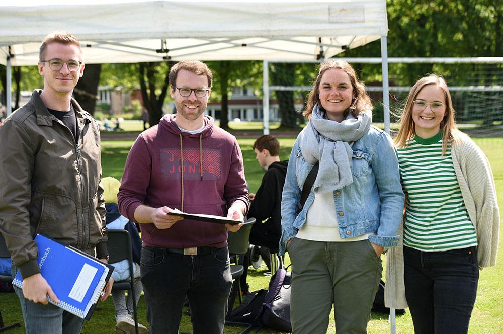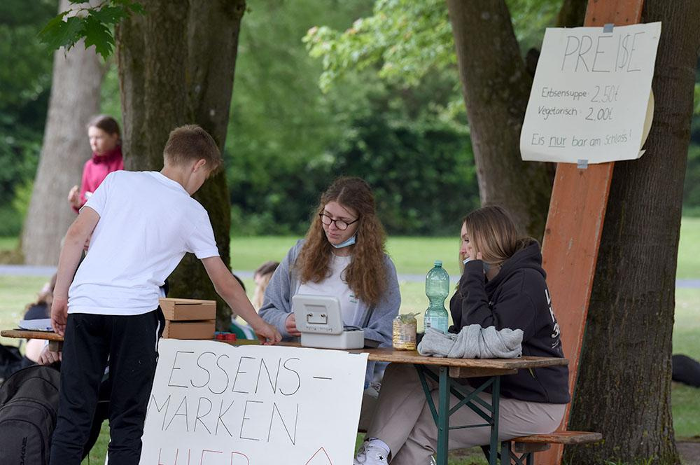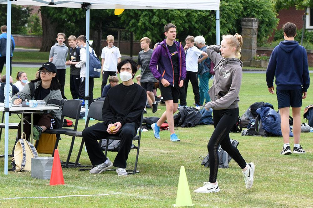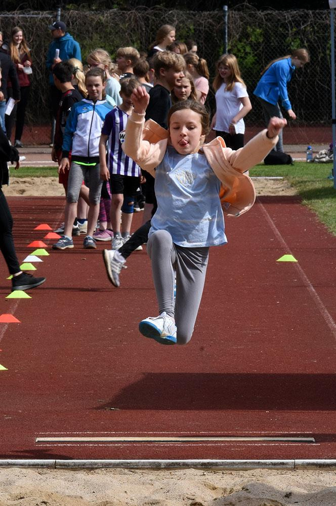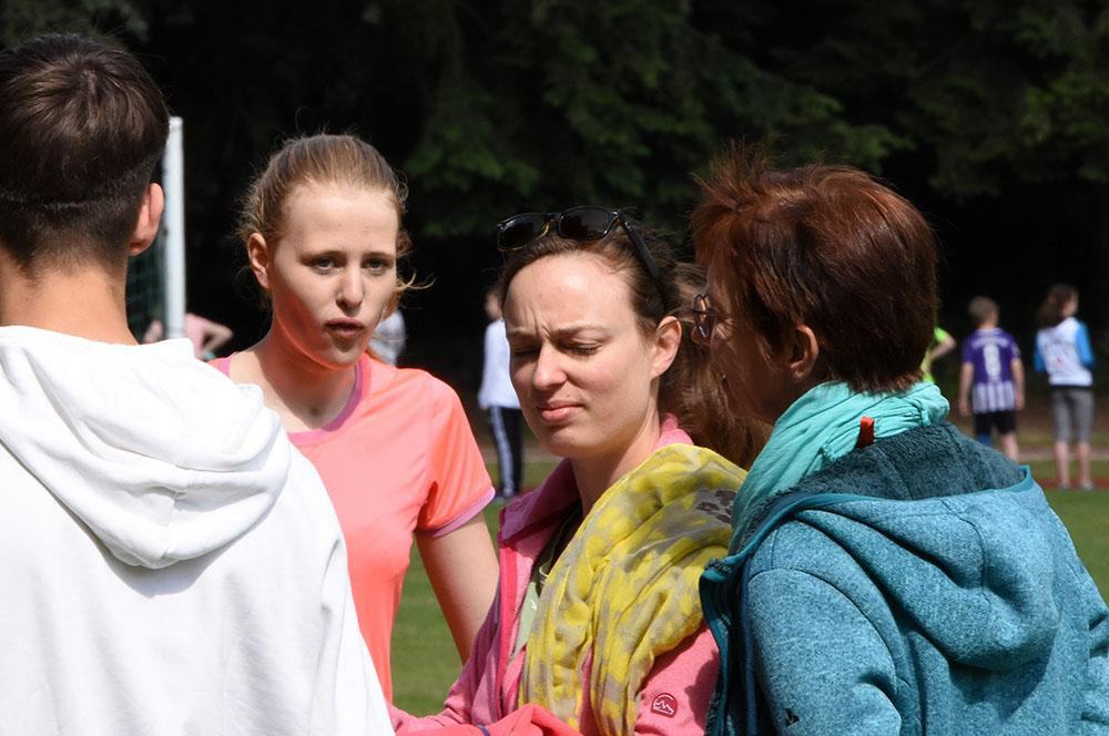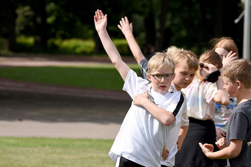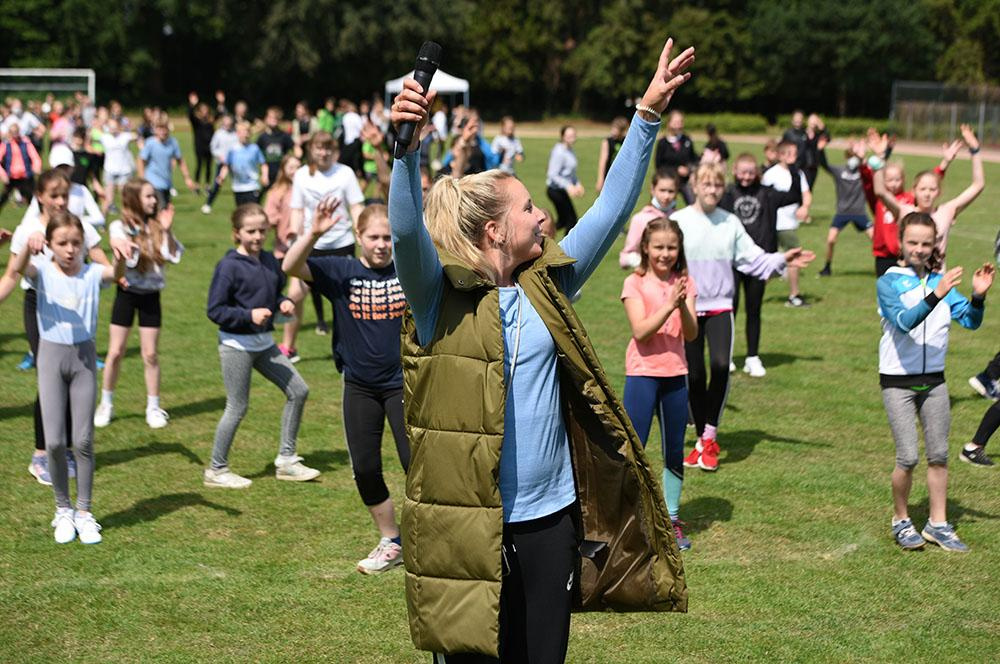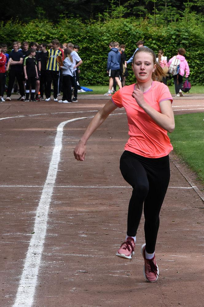 Auftakt eines sportlichen Tages bildeten die vier Disziplinen Weitsprung, Sprint, Langlauf und Wurf, die die Jahrgangsstufen 5 bis 9 im Klassenverband absolvierten. Unterstützt und motiviert durch die Schüler:innen der Jahrgangsstufe Q1 gaben die Mädchen und Jungen ihr Bestes. Unter all den starken Ergebnissen konnten sich diesmal besonders Max aus der 9d mit 1500 Punkten (und dem Tagesrekord von 12,5 sec. im 100m-Sprint) sowie Alissa aus der 9c mit 1427 Punkten (und dem Tagesrekord von 2:51 sec. auf 800m) auszeichnen. Aber wie erfolgreich auch immer: Letztlich ist das Dabeisein alles, denn es kommt auf den Spaß an der Sache und das Gemeinschaftserlebnis an.
