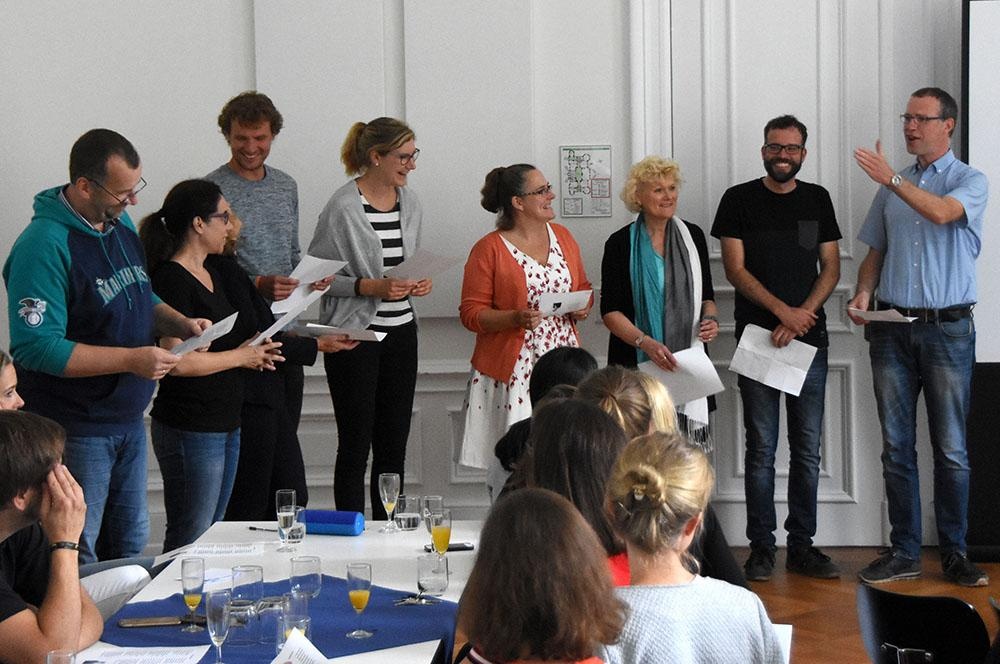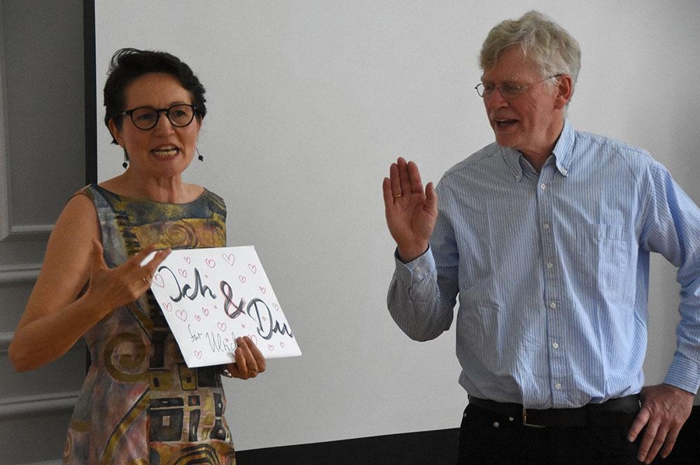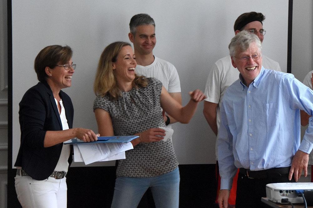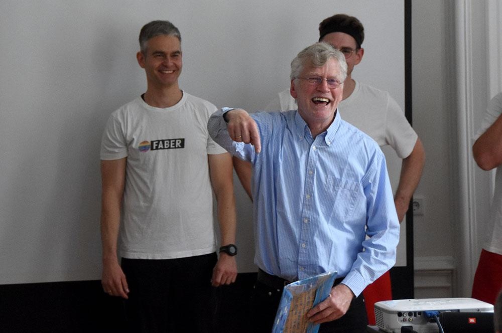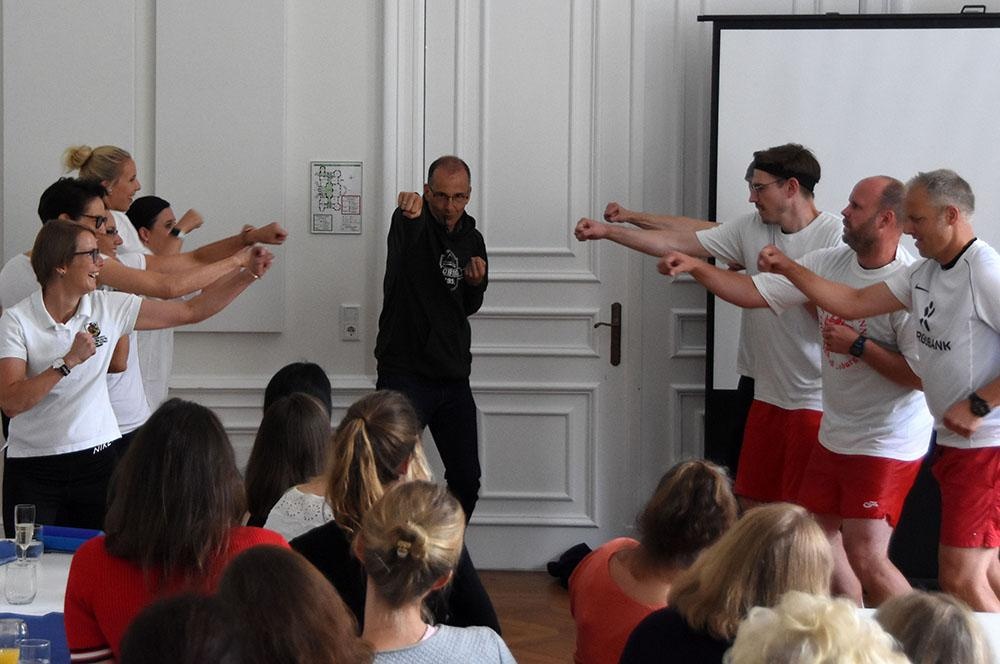 Die Fachschaft Sport spielte zunächst die Geschichte des Faches auf der Loburg vor und würdigte dadurch die Rolle, die Ulli bei der Entwicklung eines modernen Sportunterrichts und bei der Integration der Mädchen hatte. Die Historiker bedankten sich mit einem selbst verfassten Lied und betonten wie leidenschaftlich Ulli den SchülerInnen immer wieder Geschichten aus der Geschichte erzählt hat und mit welchem Einsatz er Freiheit und Demokratie vermittelt hat: