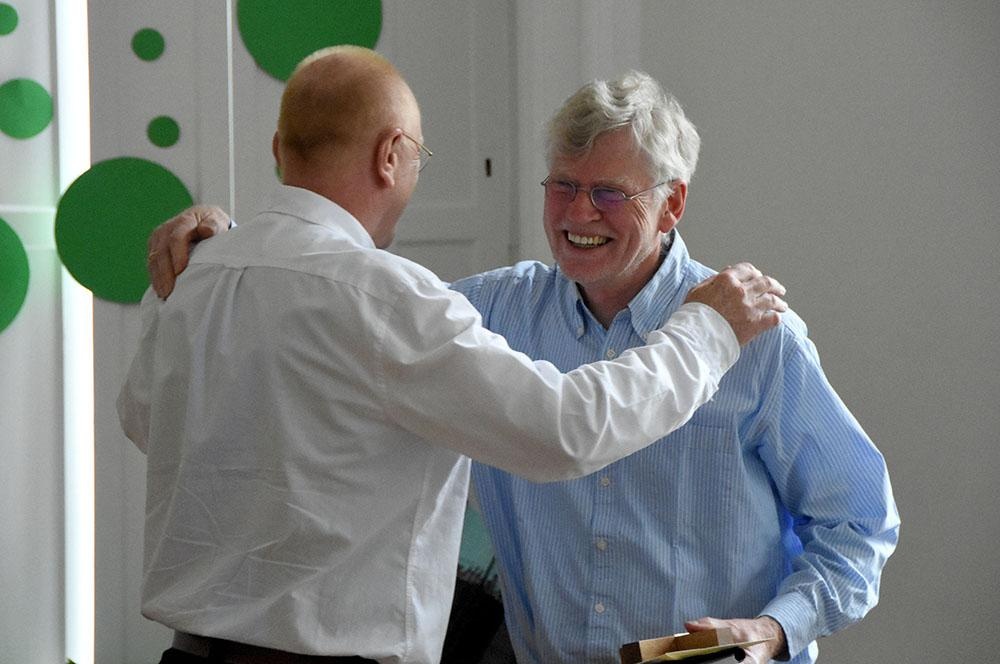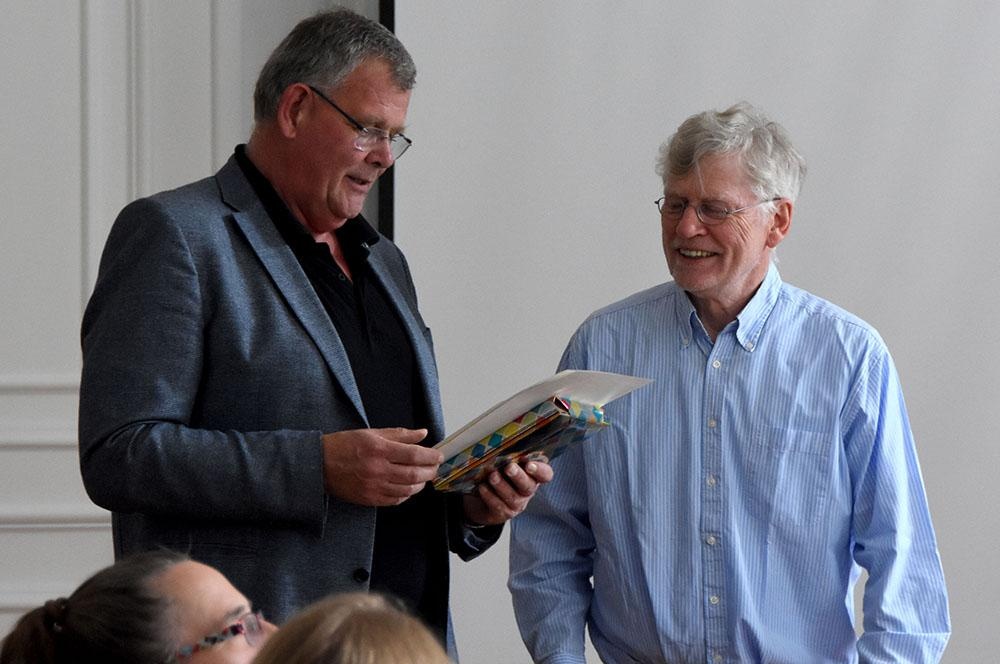 Die Künstler hatten ein Quiz vorbereitet, das Ulli mit Hilfe des Kollegiums mühelos bewältigte. Mit beeindruckenden persönlichen und emotionalen Erzählungen erinnerten sie an einen Pädagogen mit ungewöhnlichen Ideen und Methoden. Bei der künstlerischen Gestaltung der Loburg hat Ulli wohl am nachhaltigsten gewirkt. Zahllose Kunstwerke im Innen- und Außenbereich werden wohl noch Jahrzehnte das Bild der Loburg prägen. Sein bekanntestes Werk ist wohl das „kaputte Auto“ (so der Wortlaut eines Schülers), das schon in zahlreichen Publikationen über das Münsterland besprochen wurde.