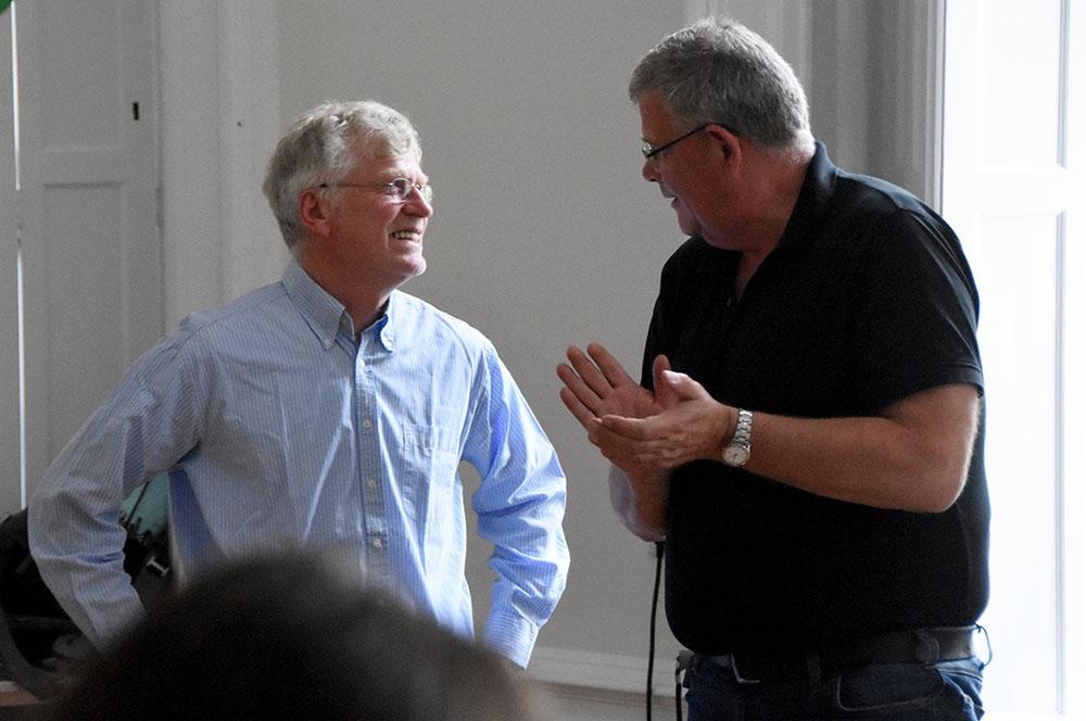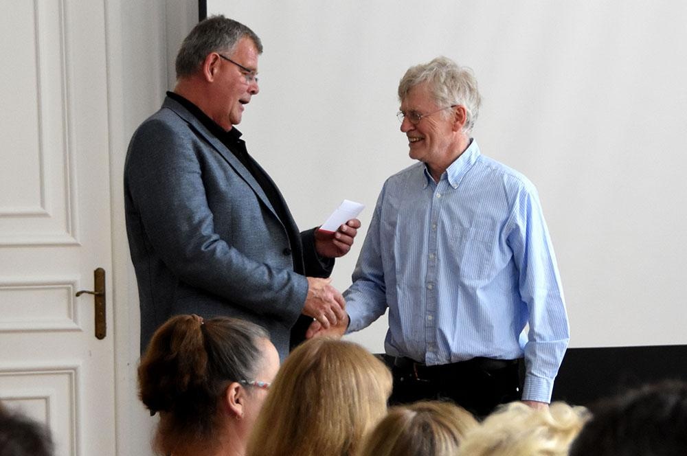 Niemand in der Geschichte hat länger im Dienst der Loburg gestanden als Ulrich Lunkebein. Vor über vierzig Jahren begann er hier als Referendar. Nach dieser langen Zeit durften wir ihn am letzten Schultag des Schuljahres in den wohlverdienten Ruhestand verabschieden. Nachdem sich morgens die SchülerInnen in der Aula und im Gottesdienst für seinen beeindruckenden Einsatz bedankt hatten, kam das ganze Kollegium im Rittersaal zusammen, um das Wirken des lieben Kollegen Ulli noch einmal Revue passieren zu lassen. Michael Bertels zählte zunächst einige Aktivitäten auf, mit denen Ulli die Loburg in all den Jahren maßgeblich mitgeprägt hat. Die Fachschaften konkretisierten das dann in launigen Beiträgen und Spielen.