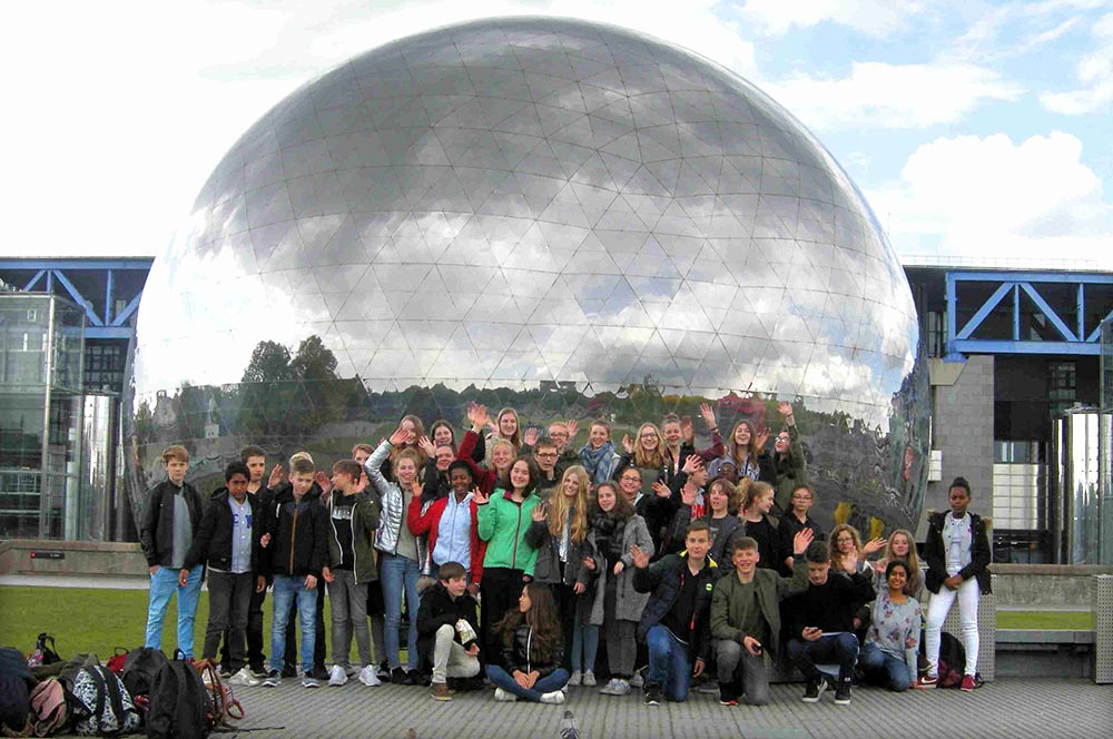 Am Donnerstag haben wir die Cité des Sciences et de l’Industrie besucht. Das war ein sehr spannendes Mitmach-Museum, in dem wir durch verschiedene Geräte und Experimente bestimmte Themengebiete besser kennengelernt haben. Anschließend waren wir in der Géode, die direkt neben dem Museum liegt, und dort haben wir uns einen Film über eine Weltraumstation angeschaut. Die Géode ist eine riesige Kugel aus Spiegeln, innen geht es aus mehreren Treppen in den großen Saal. Dort sah es aus wie in einem Kino, allerdings waren die Stühle sehr nach hinten gekippt. Deswegen konnte man gut an die gewölbte Decke schauen, an der der Film abgespielt wurde. Der Film war auf Französisch, was anfangs ein wenig knifflig war, aber man hat sich sehr schnell daran gewöhnt und am Ende hat man sogar sehr viel verstanden. Danach hatten wir noch ein wenig Zeit um noch mehr im Museum auszuprobieren, später waren wir im Planetarium und haben uns einen Film über die Enstehung der Erde angeschaut.