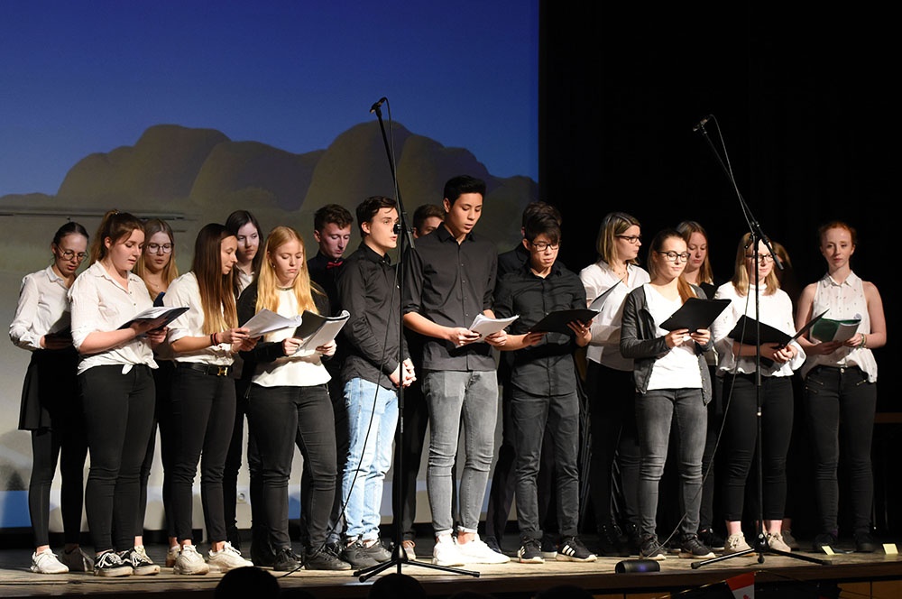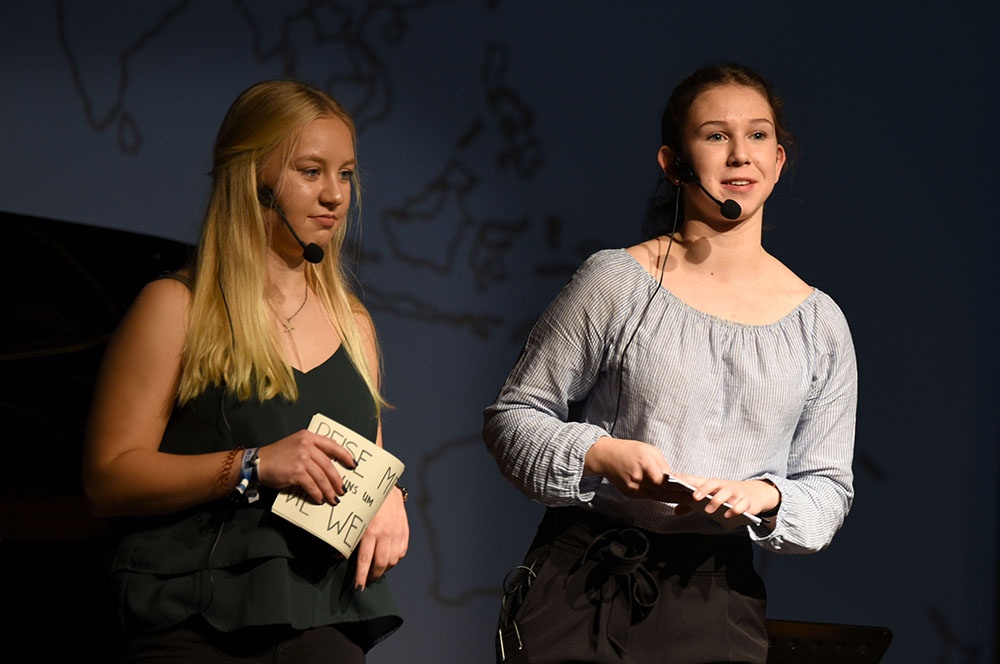 Auf eine „Reise um die Welt“ lud die Q2 am Sonntag den 25.11. in die Aula ein. Der Bunte Abend bot Theater, Tanz, Musik und die Präsentation und Versteigerung mehrerer Kunstwerke. Jedem Auftritt war ein Land zugeordnet, sodass die Moderatorinnen die einzelnen Programmpunkte zu einer Reise durch alle fünf Kontinente zusammenfügten.