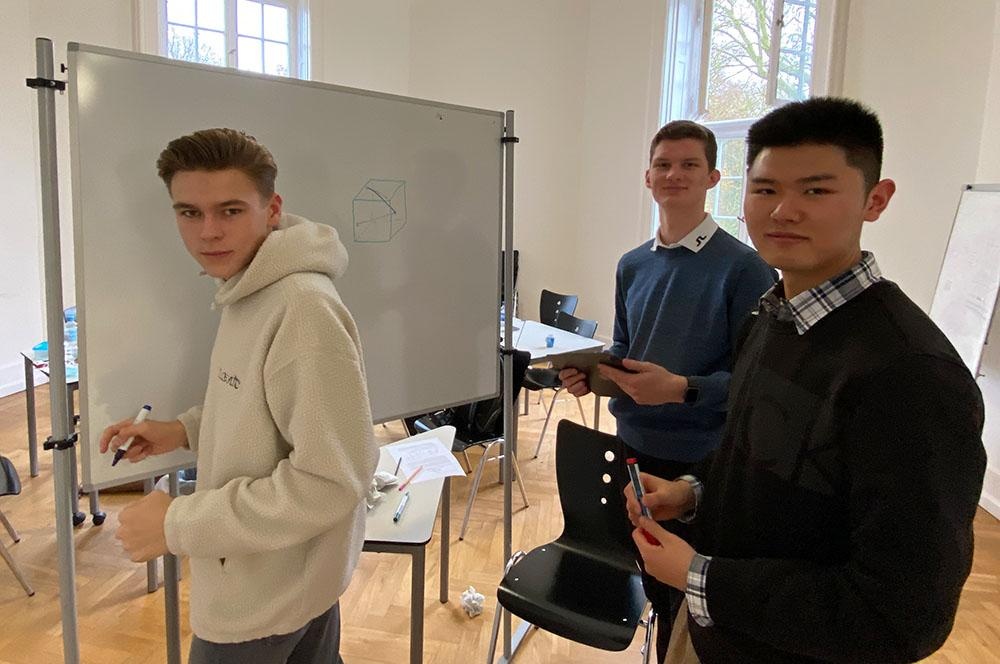 Mit großem Ansporn und Engagement gingen die Oberstufenschüler an die Aufgaben, um sich mit den Teammitgliedern (zu dritt oder zu viert) intensiv in die komplexe Problemstellung einzuarbeiten. Gemeinsam kreative Lösungen zu entwickeln, und diese plausibel darzustellen und zu erläutern, steht im Mittelpunkt der Anforderungen.
