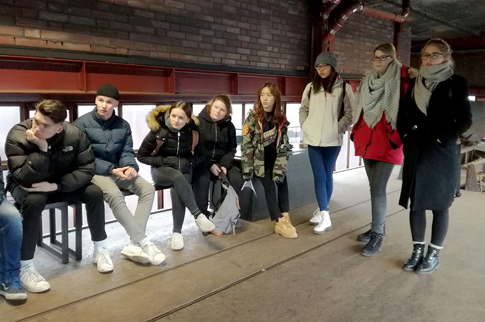 Abschließend sind wir nach Essen zur Zeche Zollverein gefahren, wo wir in Gruppen durch die beeindruckenden Areale des ehemaligen Bergwerks geführt wurden. Durch originale Videounterlagen ist es möglich geworden, die Härte eines Arbeitstages in der Zeche nachzuvollziehen, indem wir beispielsweise Werkzeuge ausprobieren durften. Dabei lernten wir auch einiges über den Weg der Kohle von der Entstehung, über den Abbau und die Verarbeitung bis hin zur Verbrennung. Lustige, spannende und beeindruckende Anekdoten unseres Gästeführers sorgten für eine besonders unterhaltsame und abwechslungsreiche Stimmung, die Raum, für unsere Fragen ließ.