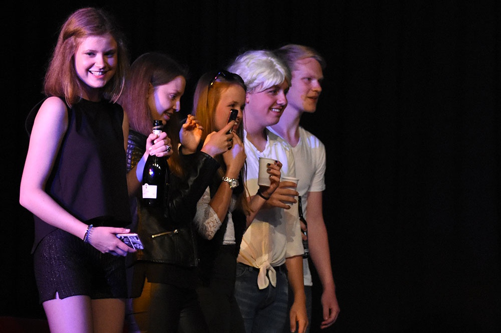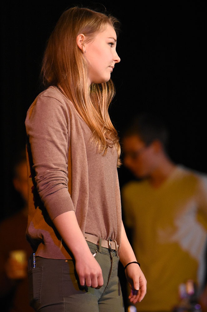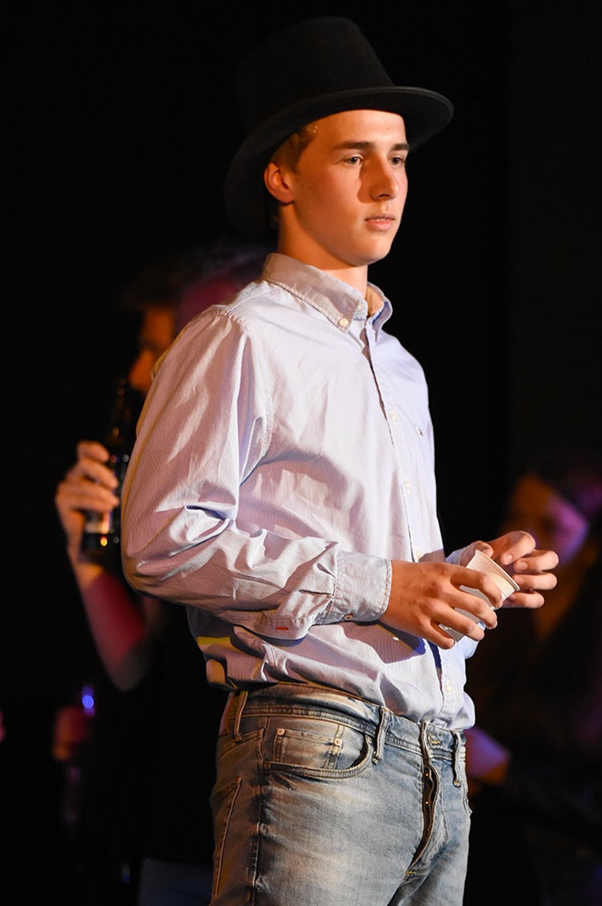 Der Funke zum Publikum sprang schnell über, der rasante Wechsel zwischen komischen und dramatischen Szenen gelang, was nicht zuletzt bedingt war durch eine überzeugende Textsicherheit aller Akteure. Auch die Techniker, die aus einem Kunstkurs ausgeliehen waren und nur wenig Zeit zum Einüben hatten, gaben alles, um die dichte Atmosphäre auf der Bühne zu unterstützen. So war dem Kurs ein begeisterter Schlussapplaus sicher. Anschließend wurde auf den Brettern, die ja angeblich die Welt bedeuten, noch ein wenig gefeiert, dann aber tatsächlich und im Einvernehmen gemeinsam etwas Tolles geschafft zu haben.