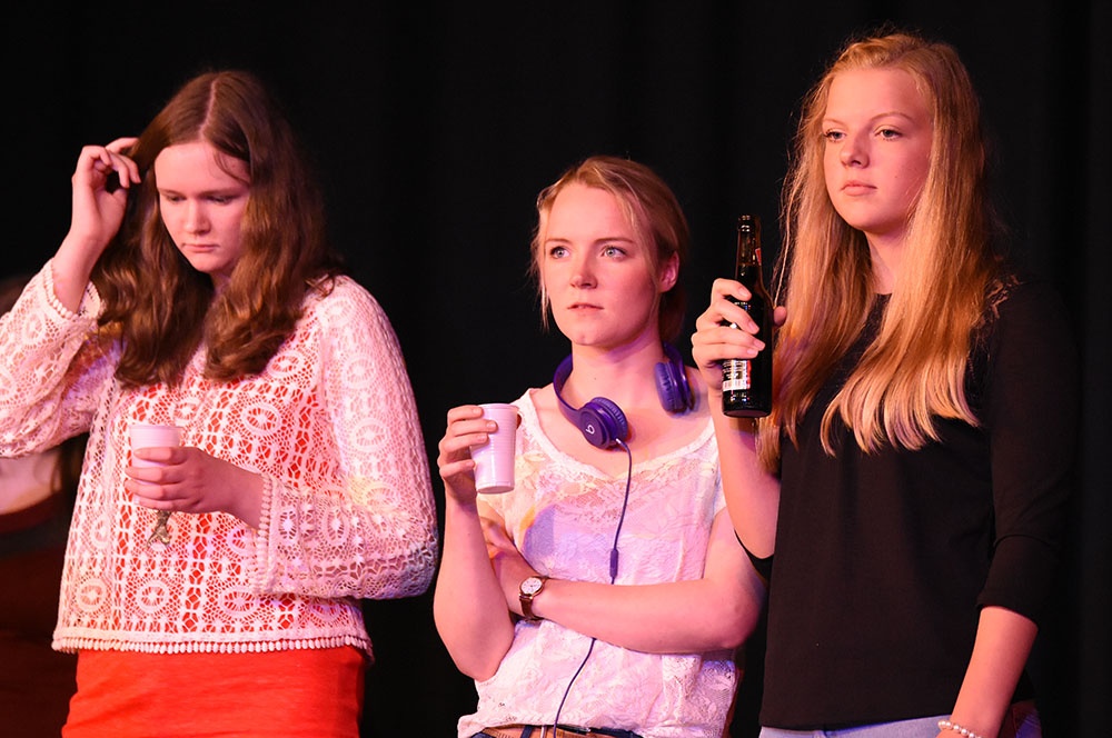 Am Mittwochabend (15.6.2016) öffnete sich der große Bühnenvorhang in der Loburger Aula für den Literaturkurs B von Herrn Kleine Büning. Jetzt konnte man zeigen, was man ungefähr ein halbes Jahr lang eingeübt hatte. Gespielt wurde das Theaterstück Frei(t)räume. Dieses Stück von Jonas Schütte handelt von den Wünschen und Sehnsüchten aber auch von den Problemen junger Menschen, die ihren Platz im Leben noch suchen. Das wird bei einer gemeinsamen Party deutlich.
