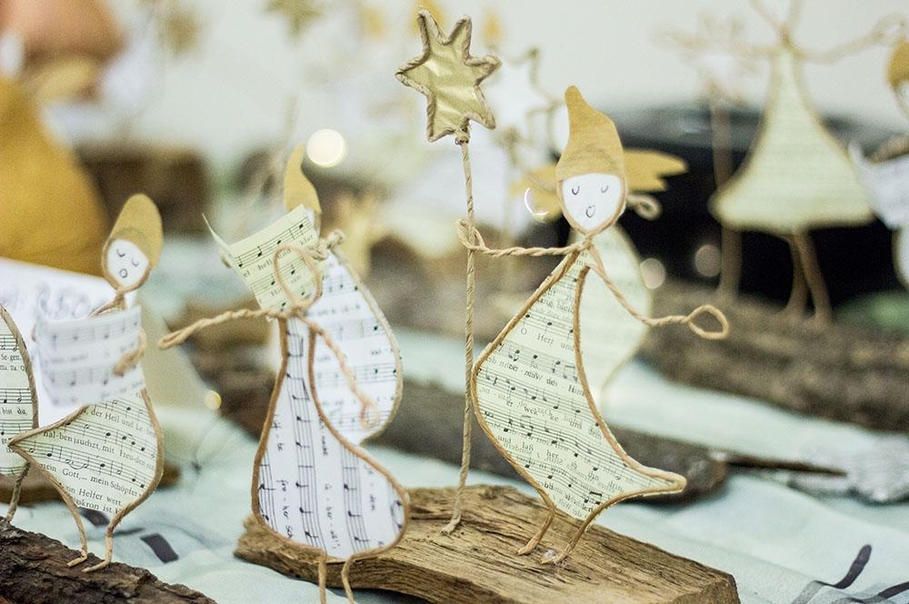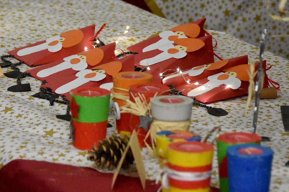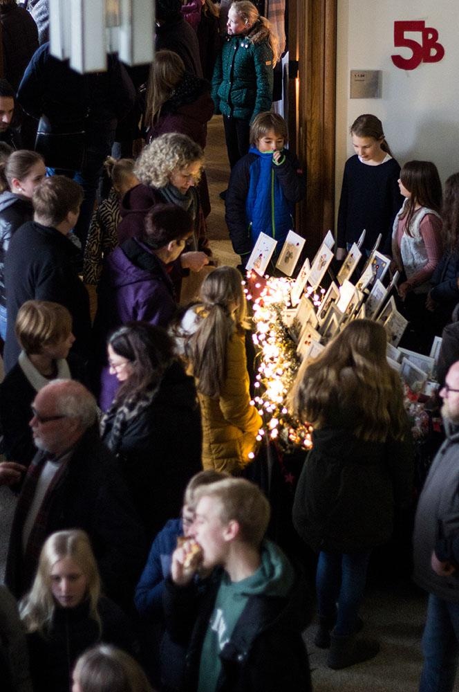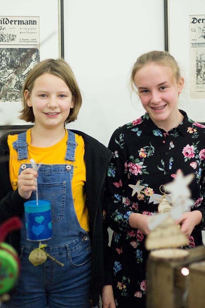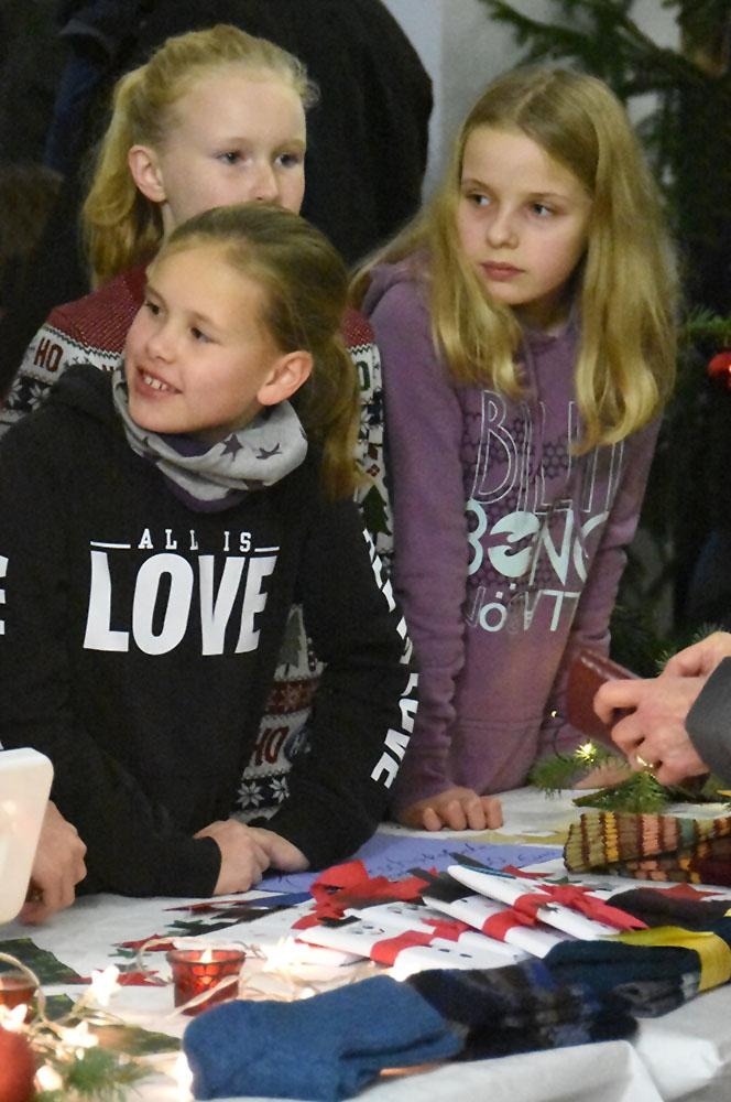 Zahlreiche Besucher schlenderten durch die einzelnen Räume und zeitweise wurde es auf der Treppe sogar recht eng. Da der Basar nicht nur zum Schauen anregen sollte, sondern auch zum Verkauf, fanden sich sehr phantasievolle Dekorations- und Geschenkartikel an den einzelnen Ständen: Dauerbrenner wie Tannendekorationen oder Weihnachtskarten, Windlichter, Futterhäuschen oder -teller oder leuchtende Sterne, die in Lasertechnik ausgesägt wurden, wechselten ebenso den Besitzer wie Laptop-Tabletts, Rindenbrettchen mit Figuren oder Rezeptbücher.