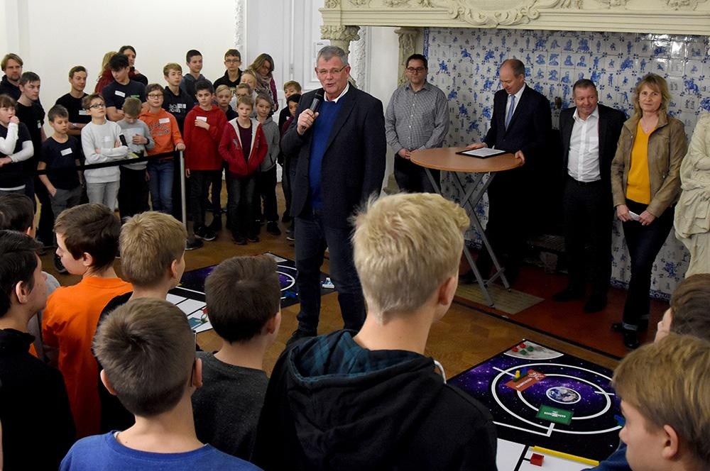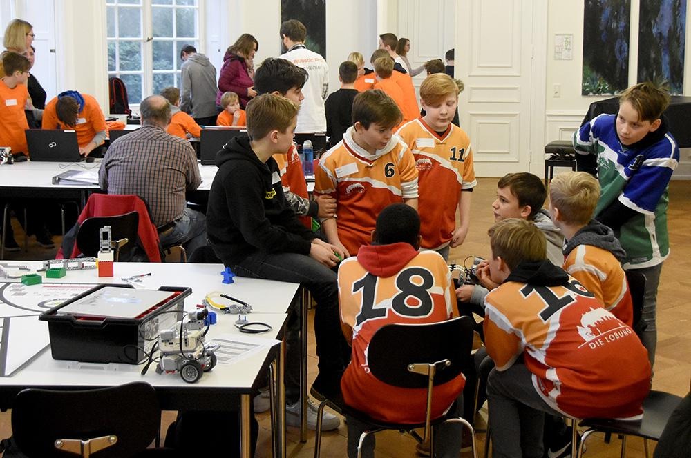 Da die zdI-Netzwerke in ihren Regionen eigene lokale Wettbewerbe für die Qualifikation zu den Regionalwettbewerben ausrichten, konnte die Loburg in diesem Jahr Premiere feiern: Erstmalig waren wir gemeinsam mit dem ZdI Netzwerk in diesem Jahr Ausrichter einer Vorrunde des jährlich ausgetragenen Roboterwettbewerbs des Landes NRW. Die Lokalwettbewerbe richten sich an Teams von weiterführenden Schulen in der Kategorie Robot-Game aus der jeweiligen zdi-Region, die darum konkurrieren, das Landesfinale zu erreichen. So konnten wir am 24.01.2020 12 Teams im Schloss begrüßen.