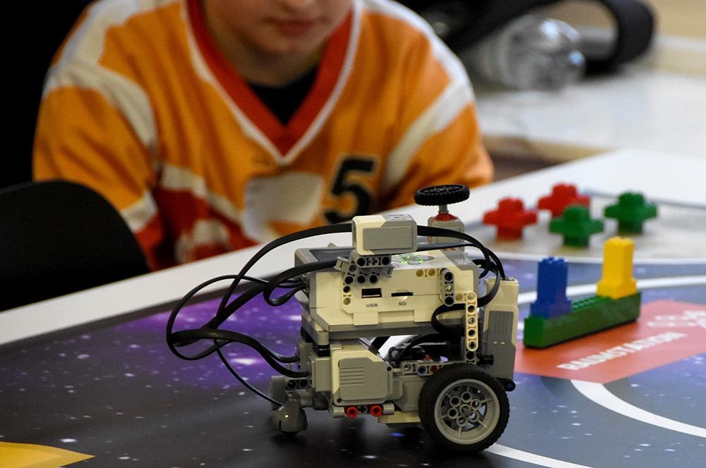 Für die Teams ging es darum in 2:30 Minuten möglichst viele thematisch bezogene Aufgaben zu lösen wie beispielsweise eine Rakete zusammen zu bauen und sie zur Raketenbasis zur transportieren oder die Weltraumstation mit Nahrung zu versorgen. Der selbstkonstruierte Legoroboter musste dazu verschiedene Legobauten auf dem Feld aufsammeln oder präzise in bestimmte Bereiche schieben.