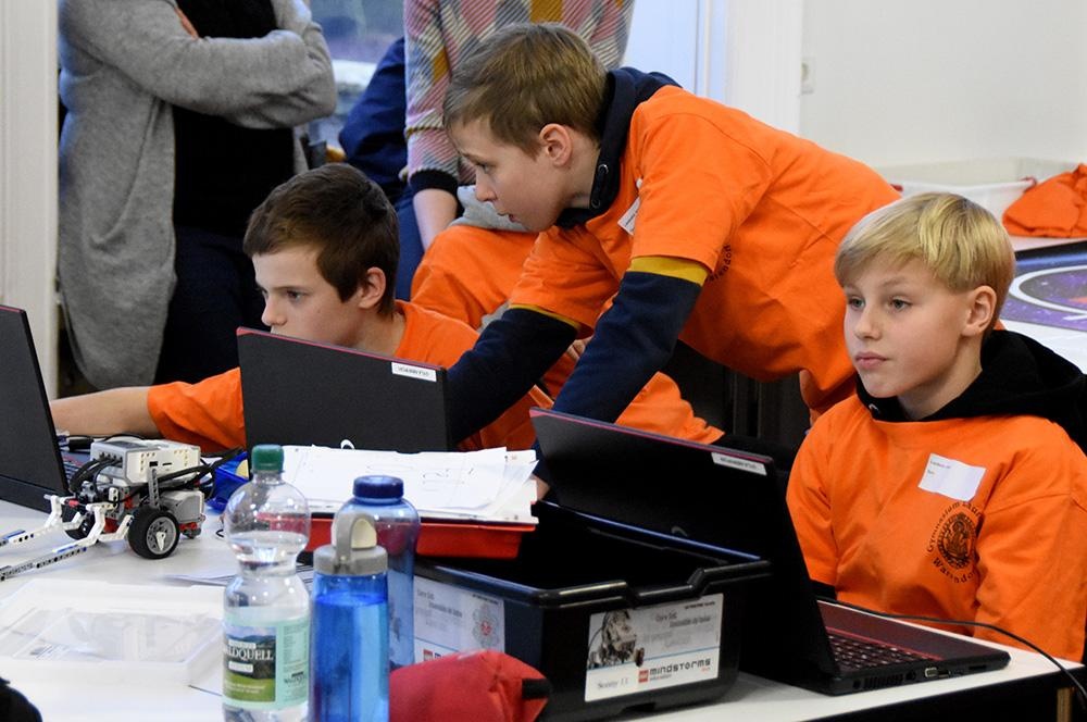 Zwischen den Wertungsrunden arbeiteten die Teams intensiv an der Verbesserung ihrer Programmierung. Diese Optimierung hat sicher dazu beigetragen, dass unsere Lobotics sich in der letzten Runde noch von dem 11. auf den 8. Platz verbessern konnten.