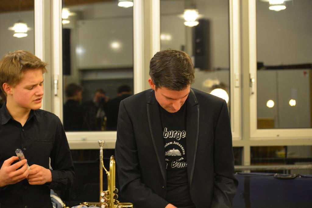 Die Bigband- erneut unter der Leitung von Rainer Kunert- sorgte mit einer Auswahl von Ohrwürmern für Stimmung und konnte ein „neues“ Talent präsentieren: Julian Kolorz performte gekonnt lässig Songs wie „Walking in Memphis“ und wurde gesanglich bei „Fly me to the moon“ von Nils Rublein (außerdem Gitarre) begleitet. Als weitere herausragende Talente der Band seien Lüder Aumann am E-Piano, Melanie Wackers am Saxophon sowie Henning Möllers an den Drums erwähnt. Die zweite, vielen unbekannte Band schlug leisere Töne an und ließe sich dem Genre „Singer Songwriter“ zuordnen: Julian Pohlschmidt und Felix Niermann, Schüler der Q2, hatten zwei Freunde aus Füchtorf und damit ihre Band „True Story“ an die Loburg gebracht. Das sympathische Quartett mit Julian an der Spitze präsentierte drei selbstgeschriebene Lieder mit zwei Gitarren, Bass und Cajon- und das machte neugierig auf mehr.
