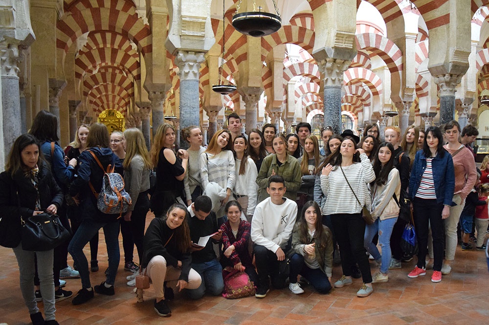 Marina und María Dolores führten uns nach einer kurzen Pause in die Moschee-Kathedrale, die eines der einzigartigsten Sehenswürdigkeiten der Welt ist. Hier verschmelzen zwei Kulturen durch Architektur: die islamische und die christliche. Dann ging es an dem Triumphbogen vorbei zur römischen Brücke, wo Marina uns die herausragende Rolle Córdobas während des Römischen Reiches erläuterte. Der Rundgang endete dann an der Alcázar de los Reyes Cristianos, die den Katholischen Königen als Residenz diente. In diesem Palast kam es zu den Treffen zwischen Christopher Kolumbus und den spanischen Königen, in denen es um Kolumbusʼ Reisepläne ging. Einen kleinen Abstecher machten wir dann zum Schluss noch mit den Pferdeinteressierten zu den historischen Pferdeställen (Caballerizas Reales).