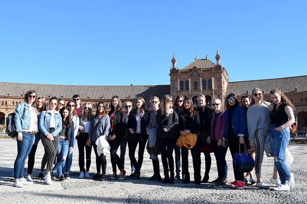 Am Montag reisten wir nach Sevilla, wo uns eine Stadtführerin in Empfang nahm. Zuerst führte sie uns zur wunderschönen Plaza de España, die von George Lucas als Kulisse für eine Szene aus Star Wars Episode II: Angriff der Klonkrieger gewählt worden ist, und zum Parque de María Luisa. Dann ging es an historischen Gebäuden vorbei zur Innenstadt, in der sich die drittgrößte Kathedrale der Welt befindet. In unmittelbarer Nähe zur Kathedrale sind die Alcázar de Sevilla, der mittelalterliche Königspalast, der bis heute von der spanischen Königsfamilie als offizielle Residenz genutzt wird, und das Archivo General de Indias, wo Dokumente mit Bezug zum spanischen Kolonialreich gesammelt werden. Vor dem Mittagessen unternahmen wir noch eine Bootsfahrt über den Fluss Guadalquivir und lernten die Stadt aus einer anderen Perspektive kennen.