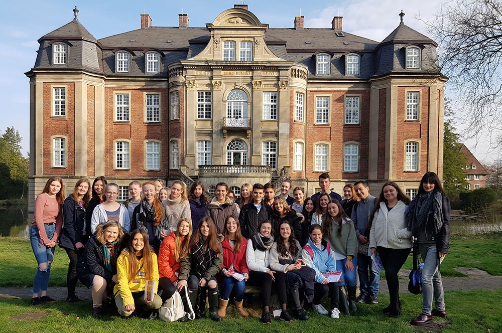 Am Montag verbrachten die spanischen Schülerinnen und Schüler den Tag an der Loburg und begleiteten ihre deutschen Austauschpartner in den Unterricht, wo sie das spanische Schulsystem mit dem deutschen vergleichen konnten. An diesem Morgen erhielten die spanischen Gäste auch zwei Deutschstunden, um zumindest einen Eindruck von der deutschen Sprache zu erhalten, denn die meisten Schülerinnen und Schüler kamen ohne Deutschkenntnisse zu uns.