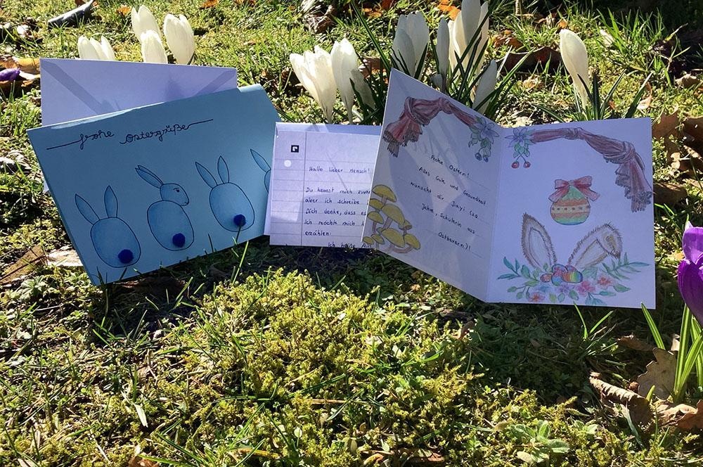Menschen in Pflegeheimen, die Aufgrund der Kontaktbeschränkungen wenig Austausch haben, erhalten mit dieser Aktion Briefe und Karten mit einem persönlichen Gruß. Neben dieser Aktion haben sich auch Schüler*innen mit Blick auf die kommenden Osterfeiertage an das örtliche Pflegeheim gewandt und einen Ostergruß für die Bewohner*innen vorbeigebracht.